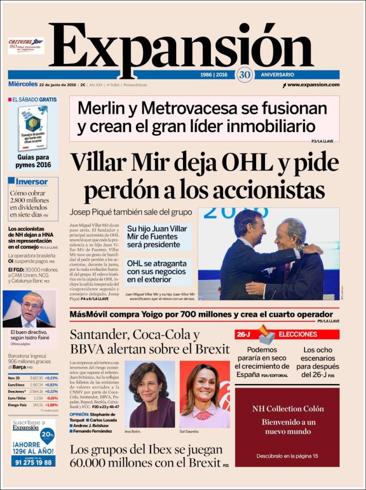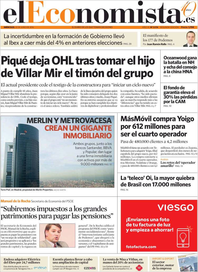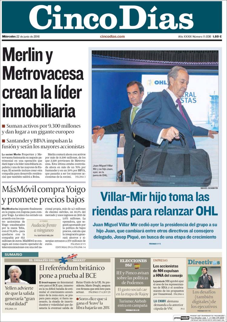 "Piqué deja OHL tras tomar el hijo de Villar Mir el timón del grupo"