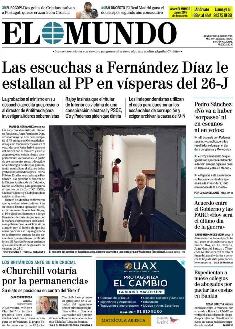 "Las escuchas a Fernández Díaz le estallan al PP en vísperas del 26-J"