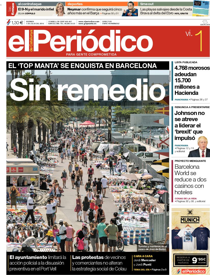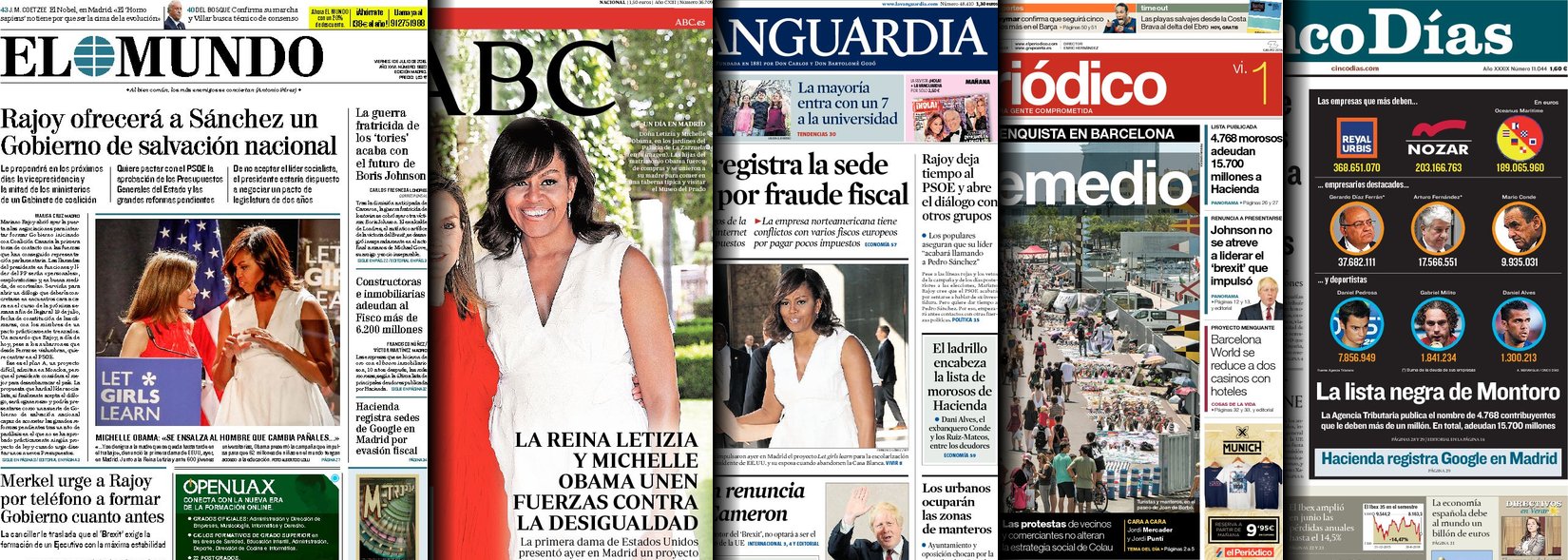 Portadas de los diarios ABC, As, Cinco Días, El Periódico y La Vanguardia.