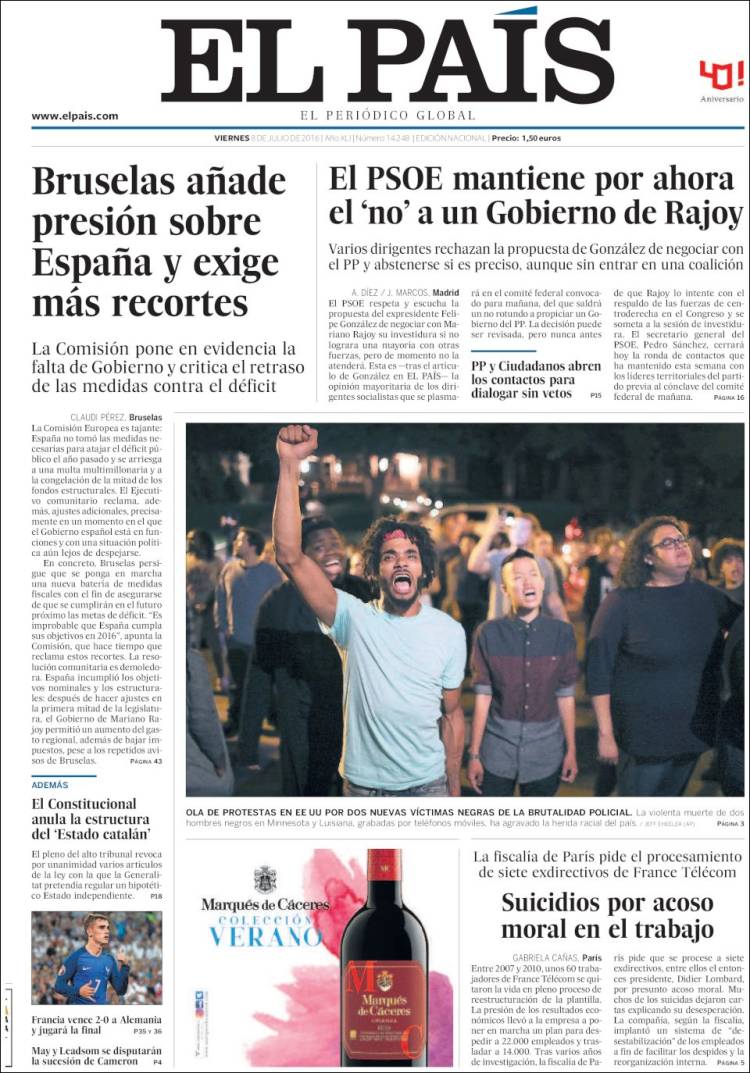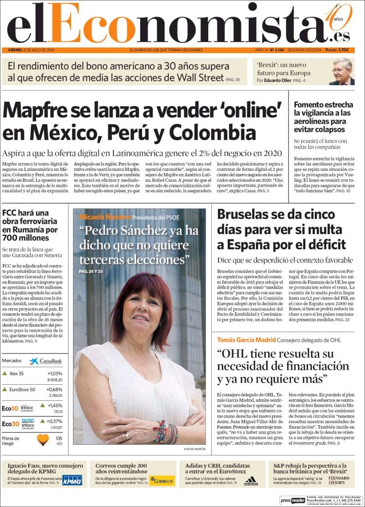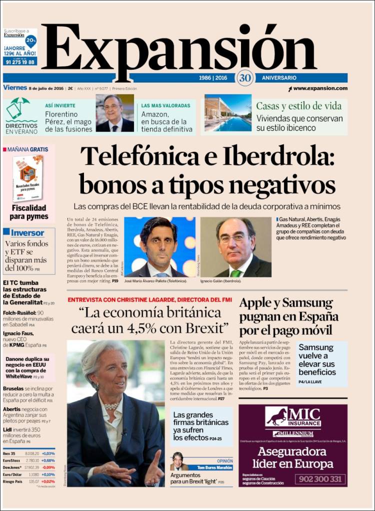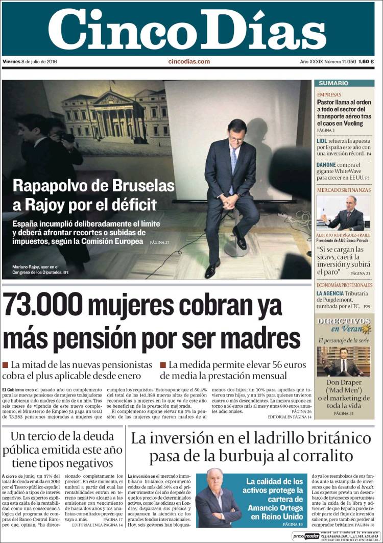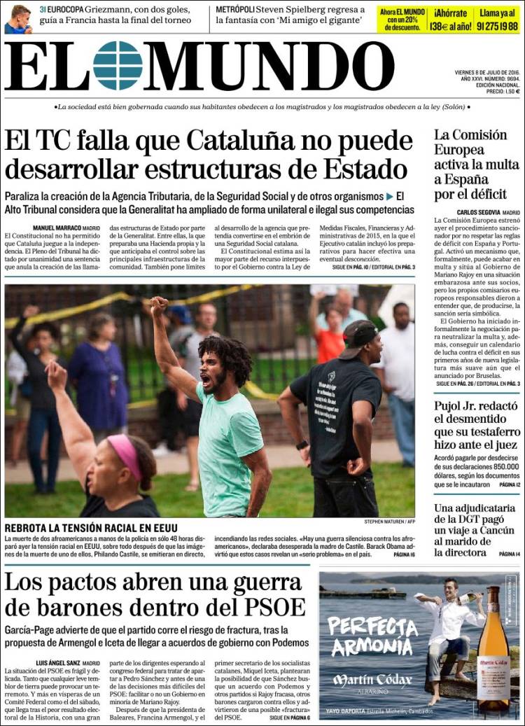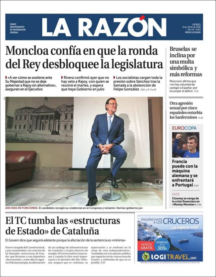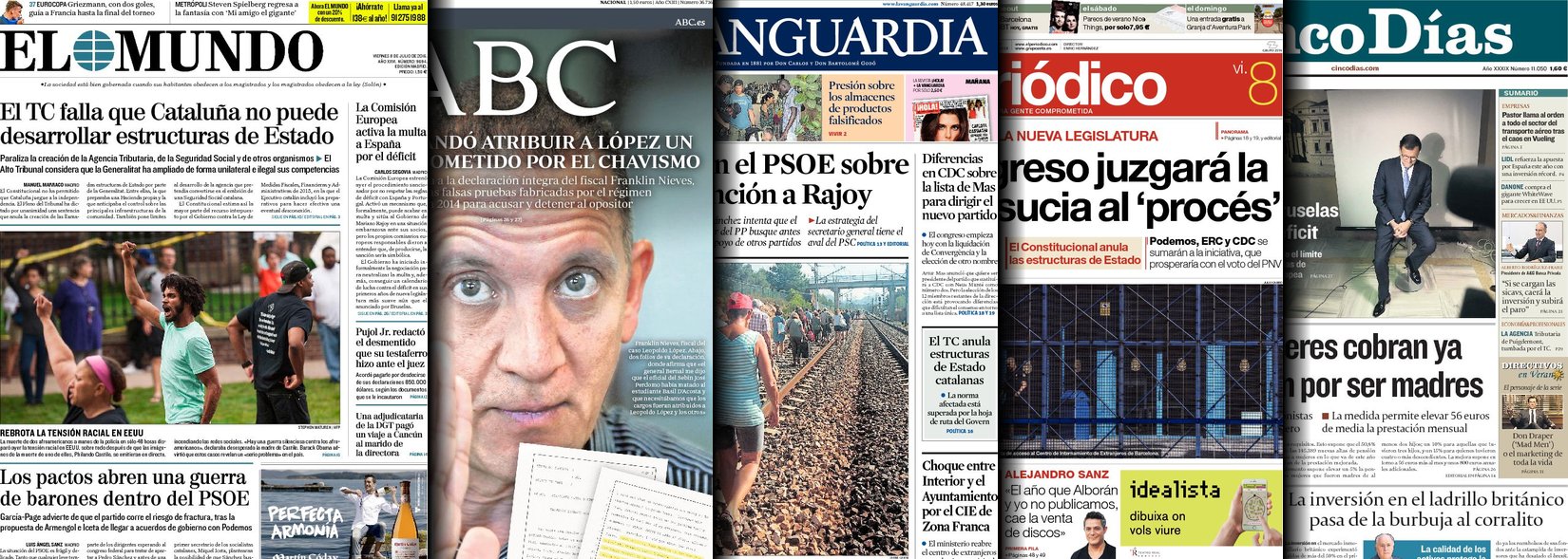 Portadas de los diarios El Mundo, El País, ABC, La Razón, La Vanguardia, El Periódico, Cinco Días, El Economista, Expansión, Marca, As, Mundo Deportivo y Sport.