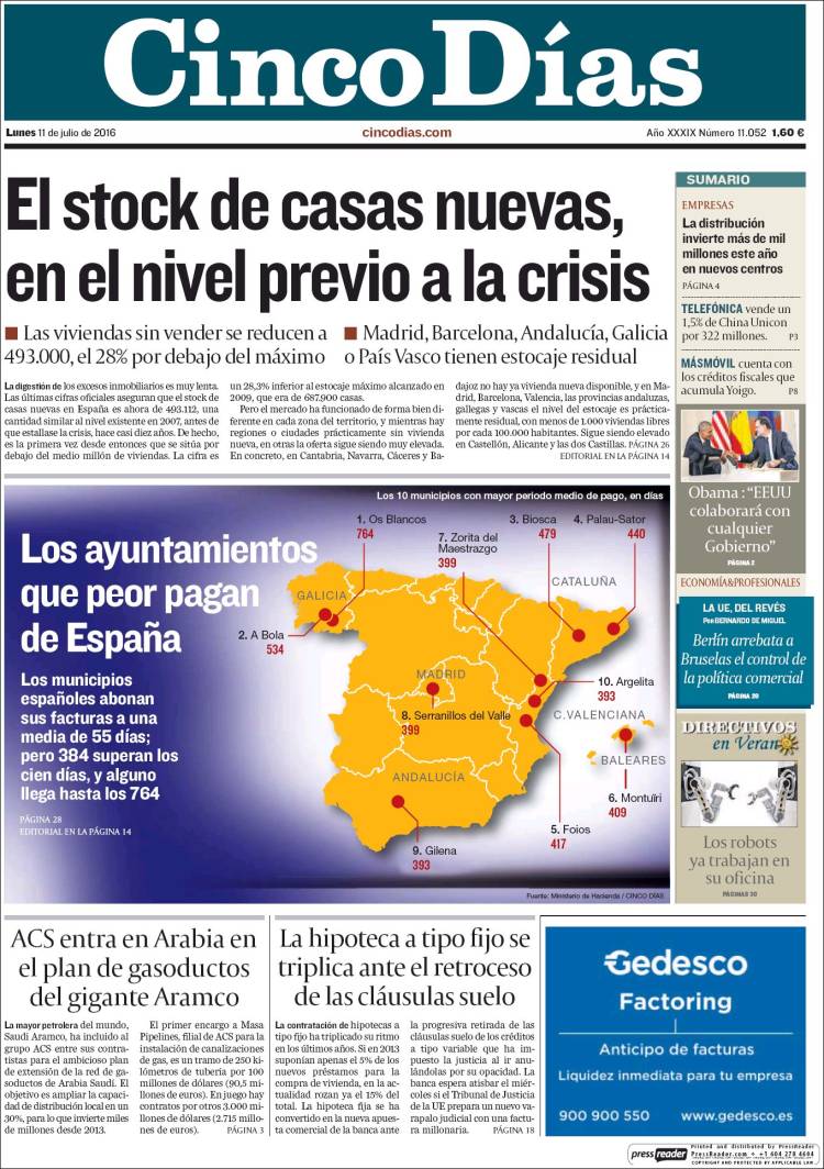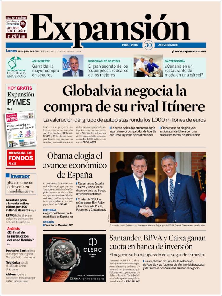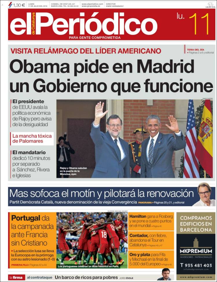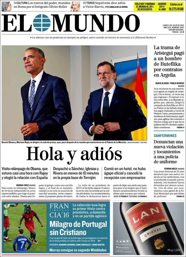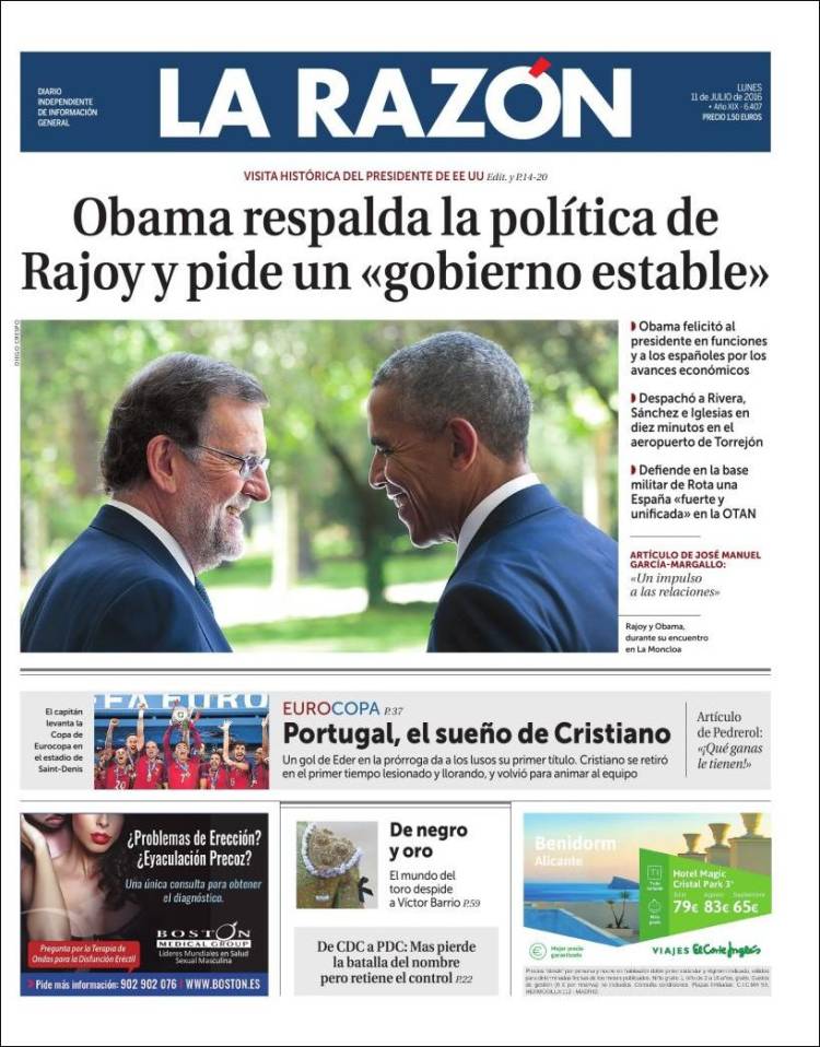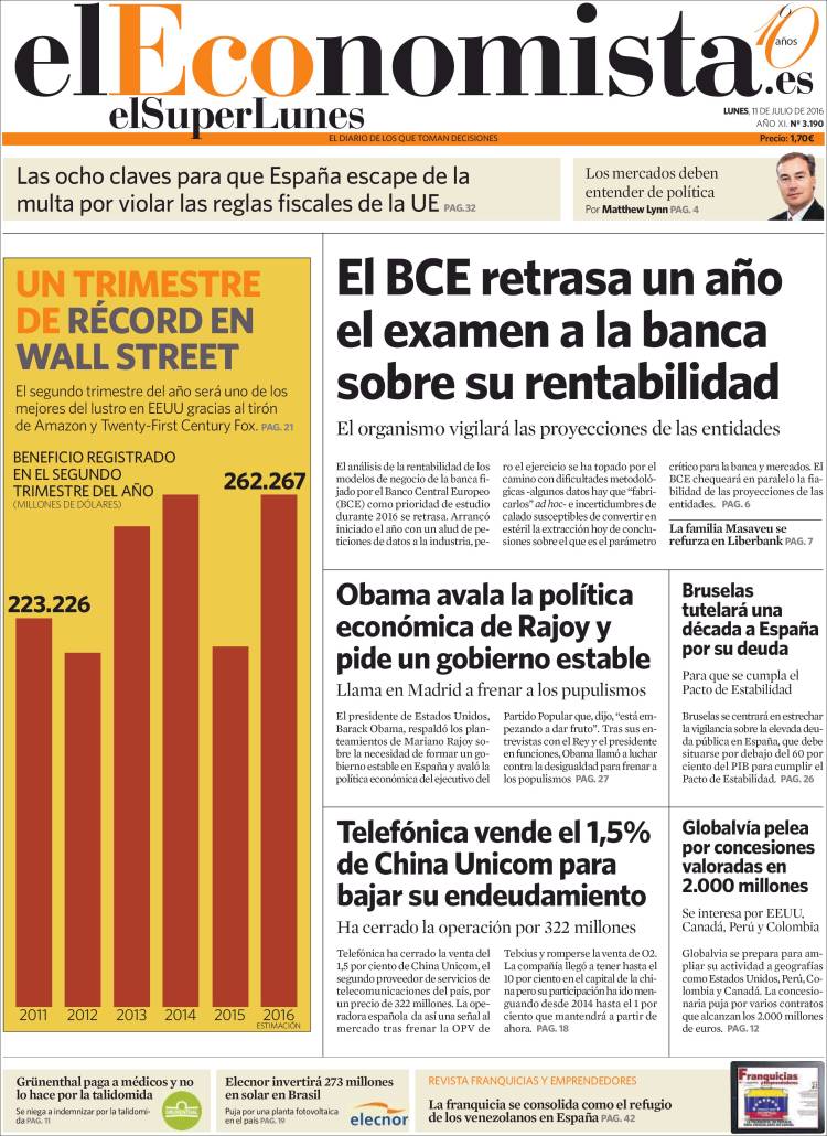Portadas de los diarios El Mundo, El País, ABC, La Razón, La Vanguardia, El Periódico, Cinco Días, El Economista, Expansión, Marca, As y Sport.