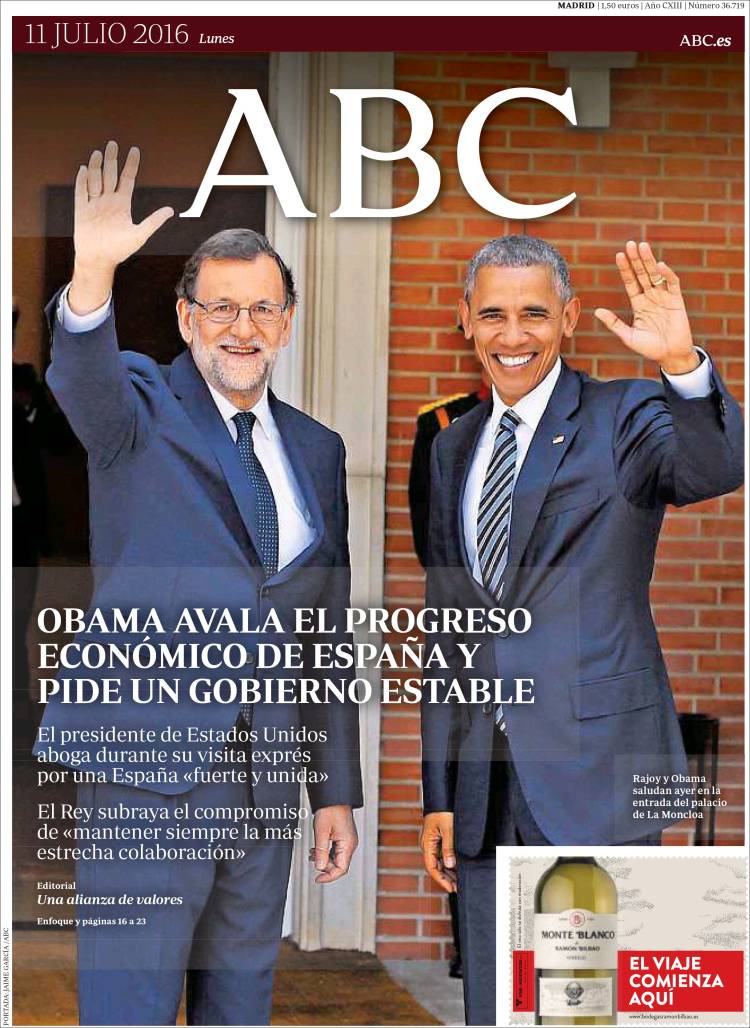 "Obama avala el progreso económico de España y pide un gobierno estable"