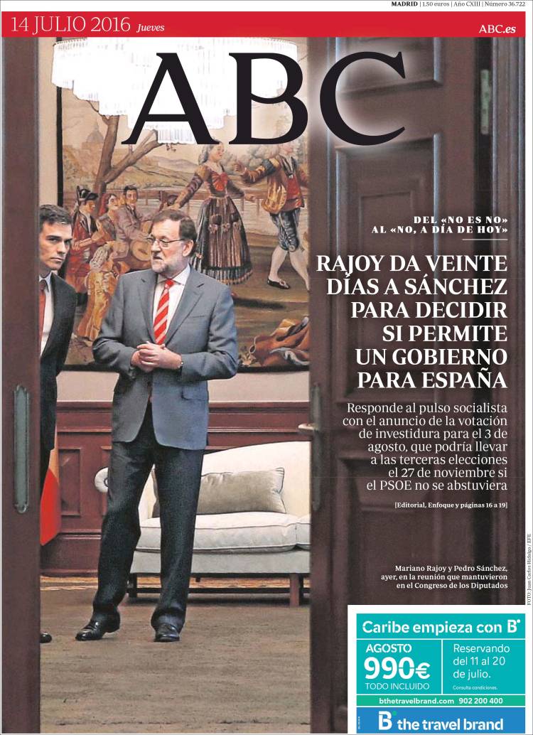 "Rajoy da veinte días a Sánchez para decidir si permite un Gobierno para España"