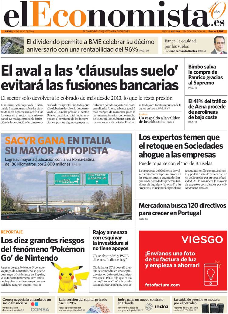 "El aval a las 'cláusulas suelo' evitará las fusiones bancarias"