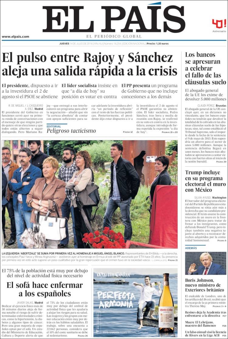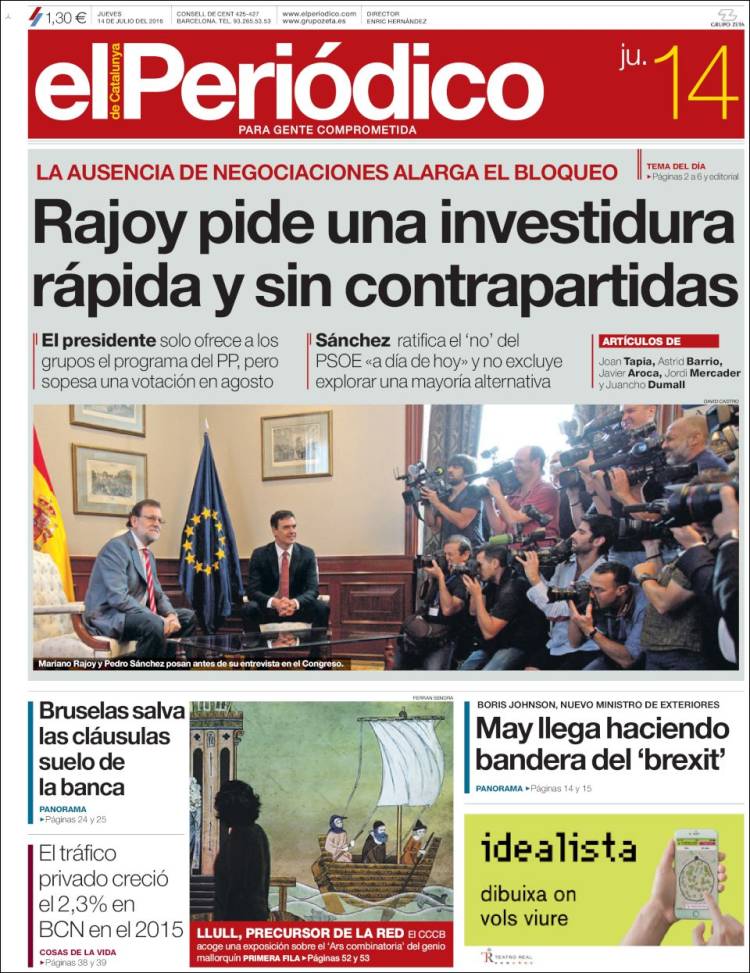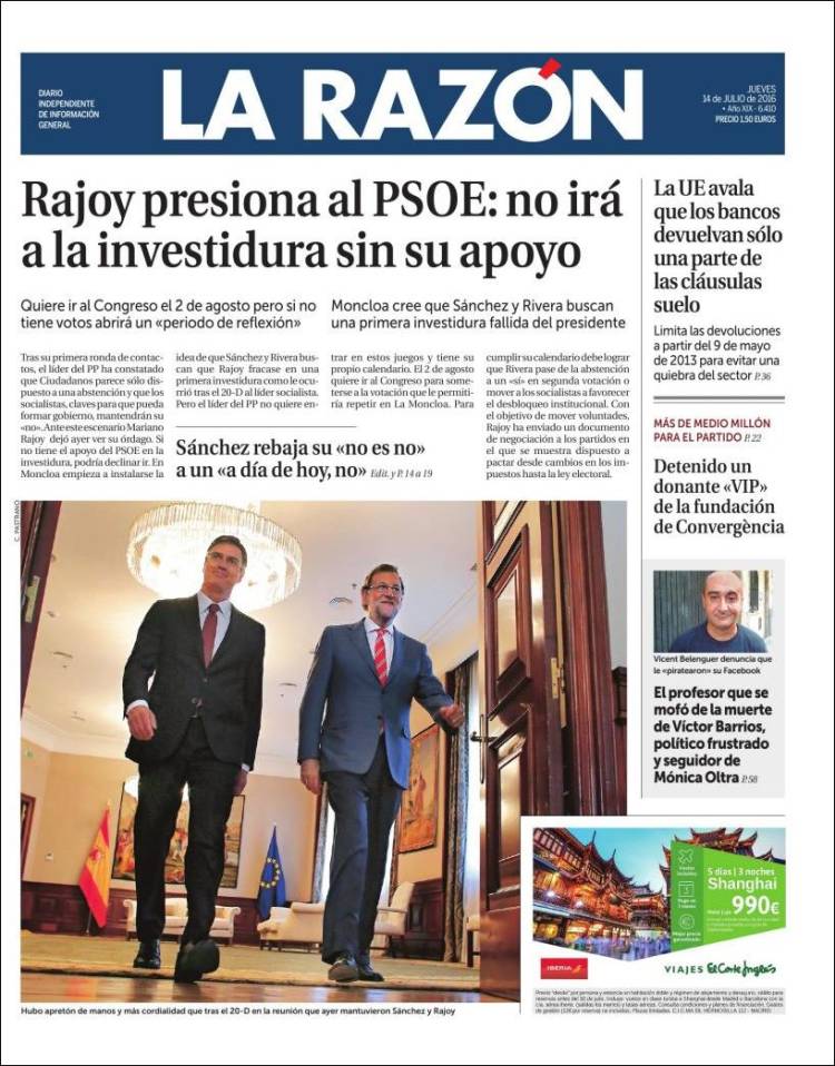 "Rajoy presiona al PSOE: no irá a la investidura sin su apoyo"