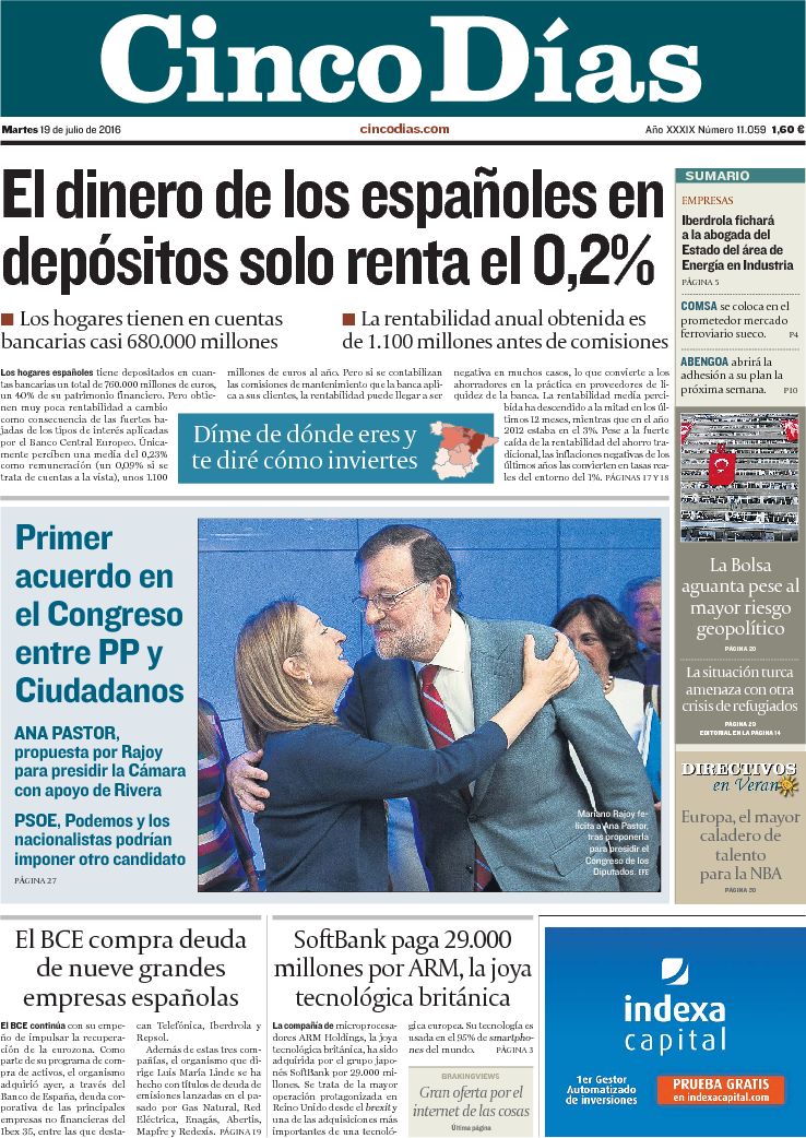Portadas de los diarios ABC, As, Cinco Días, El Periódico y La Vanguardia.