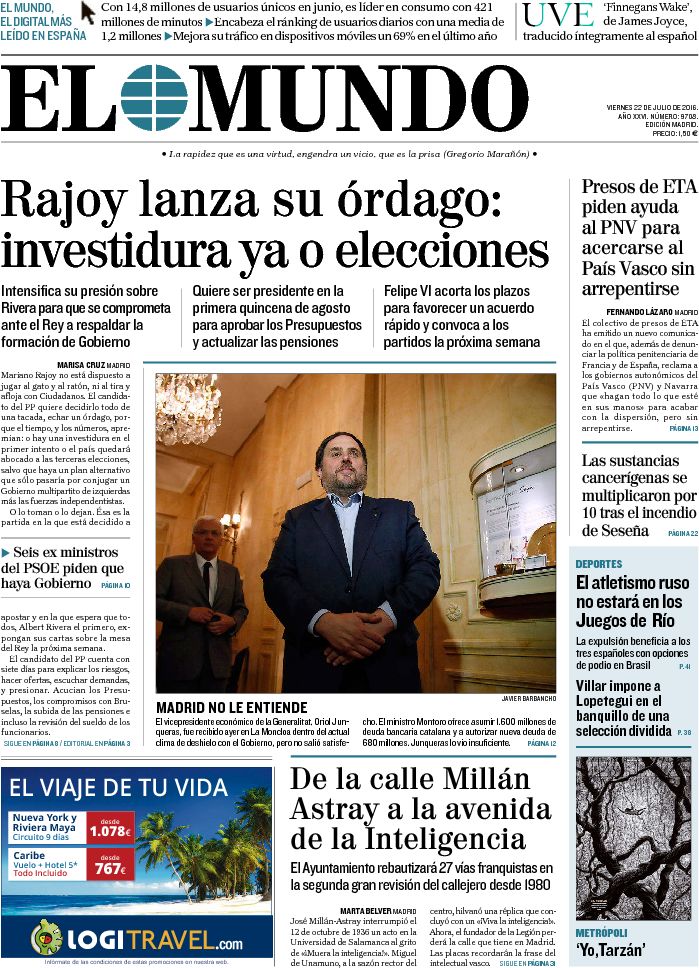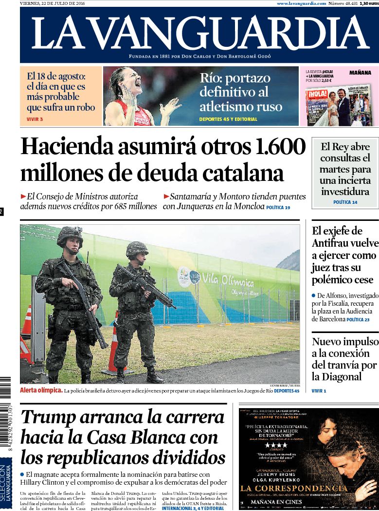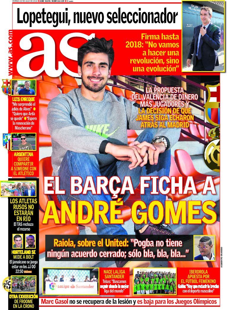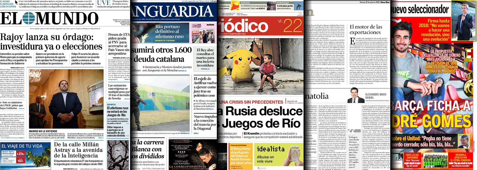 Portadas de los diarios As, Cinco Días, El Periódico y La Vanguardia.