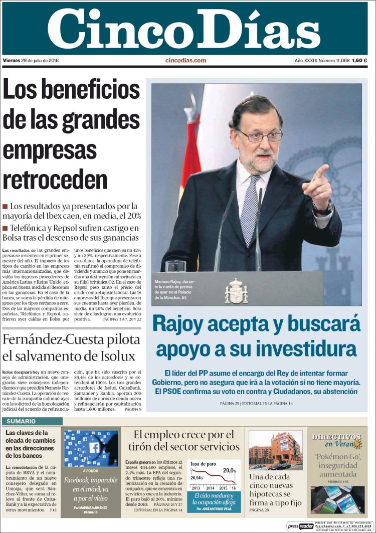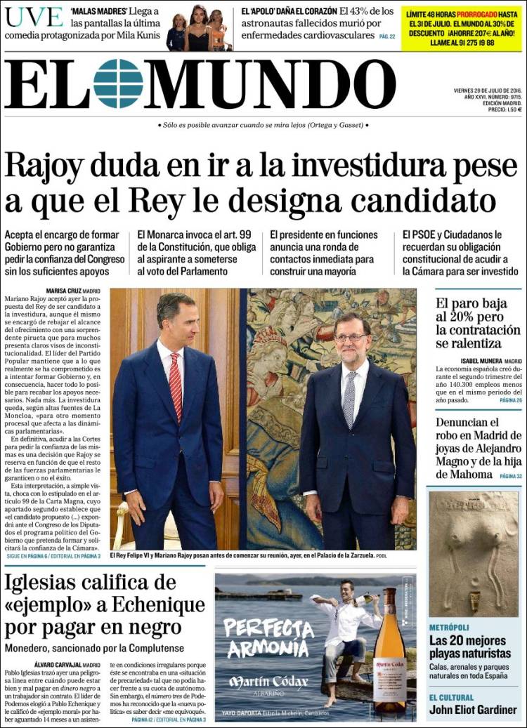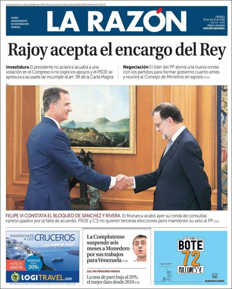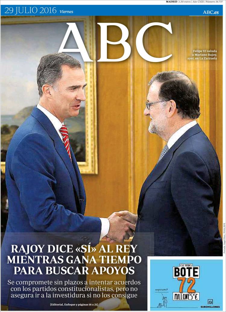 "Rajoy dice 'sí' al Rey mientras gana tiempo para buscar apoyos"