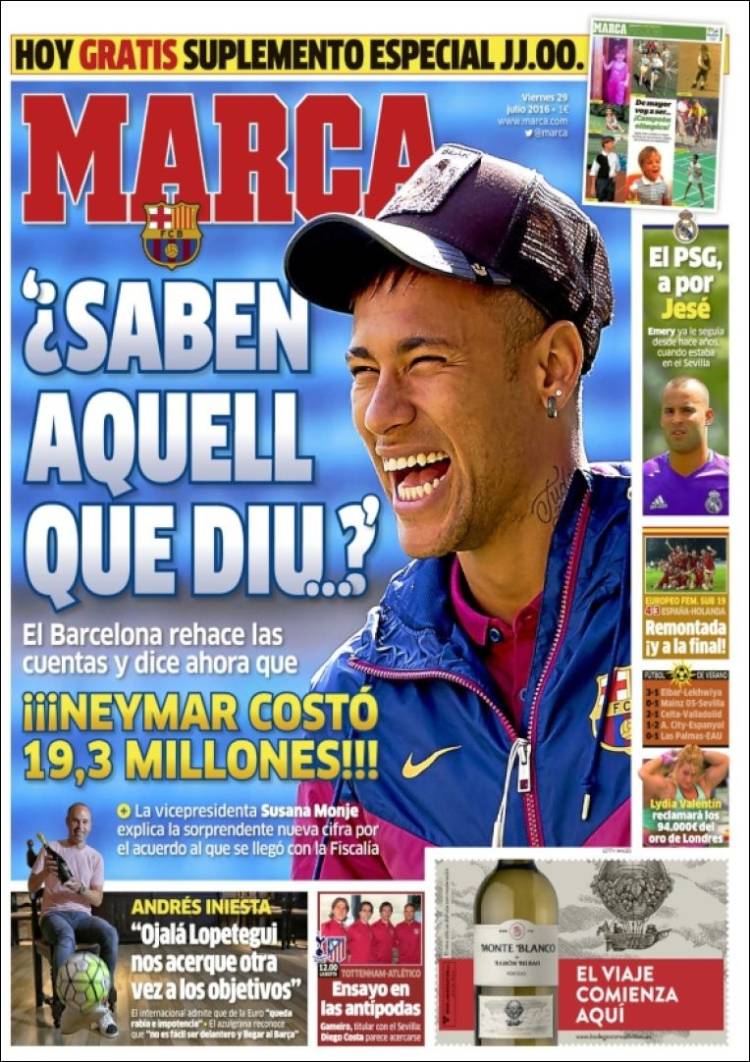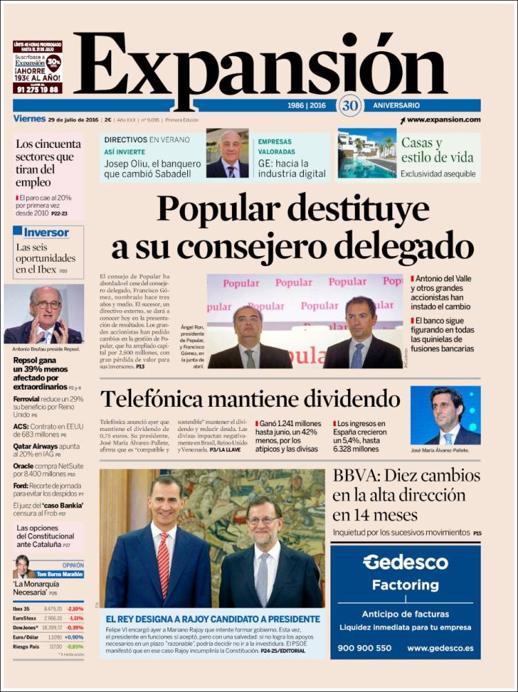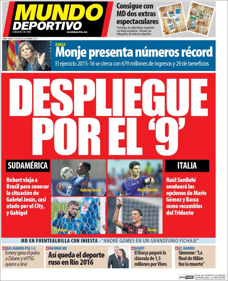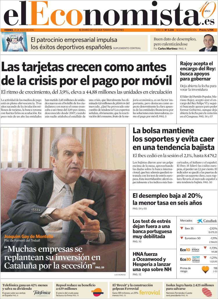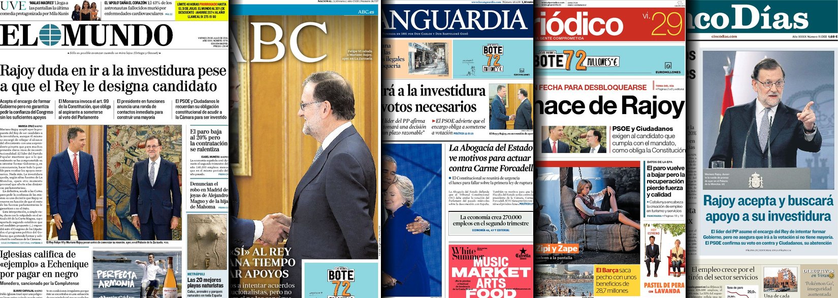 Portadas de los diarios El Mundio, El País, ABC, La Razón, La Vanguardia, El Periódico, Cinco Días, El Economista, Expansión, Marca, AS, Mundo Deportivo y Sport.