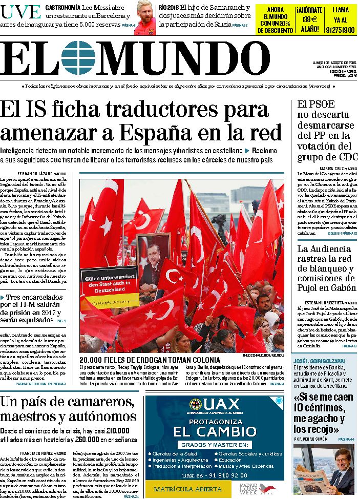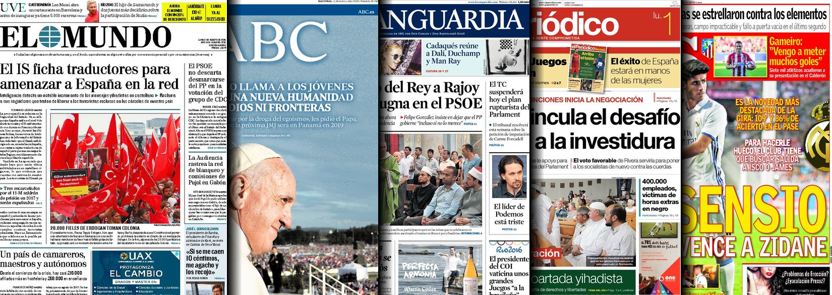 Portadas de los diarios ABC, As, El Periódico y La Vanguardia.