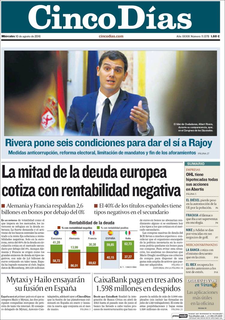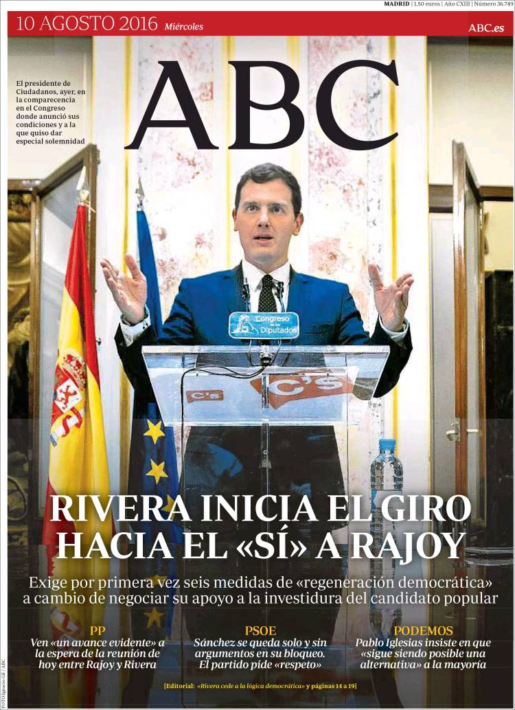 "Rivera impone seis condiciones para negociar su 'sí' a Rajoy"