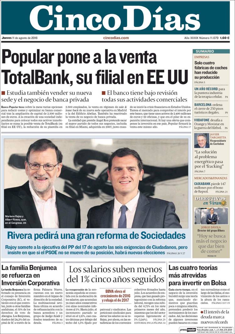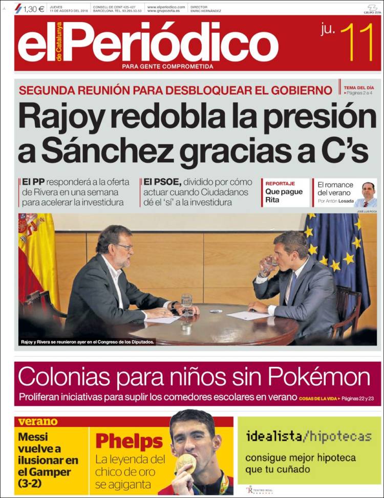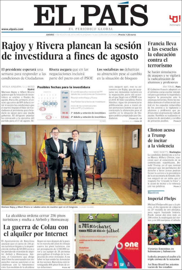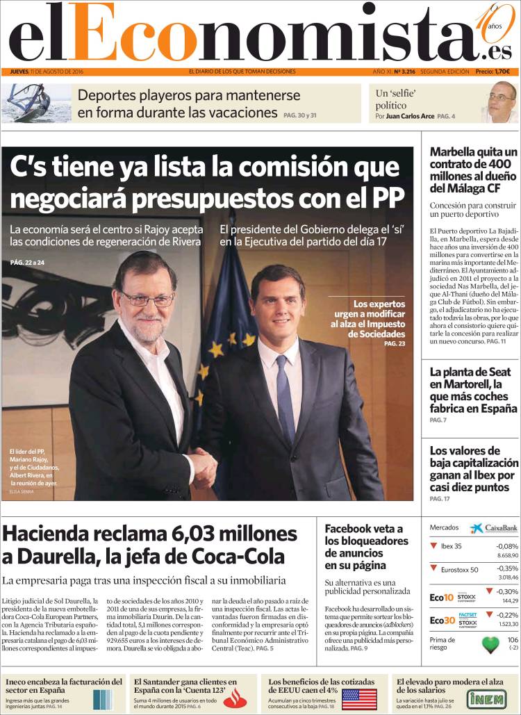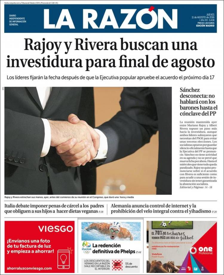 "Rajoy y Rivera planean la sesión de investidura a finales de agosto"
