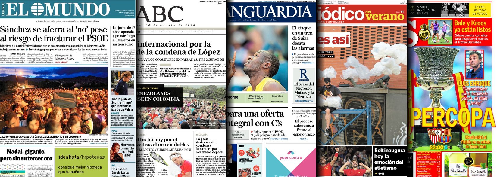 Portadas de los diarios ABC, As, El Periódico y La Vanguardia.