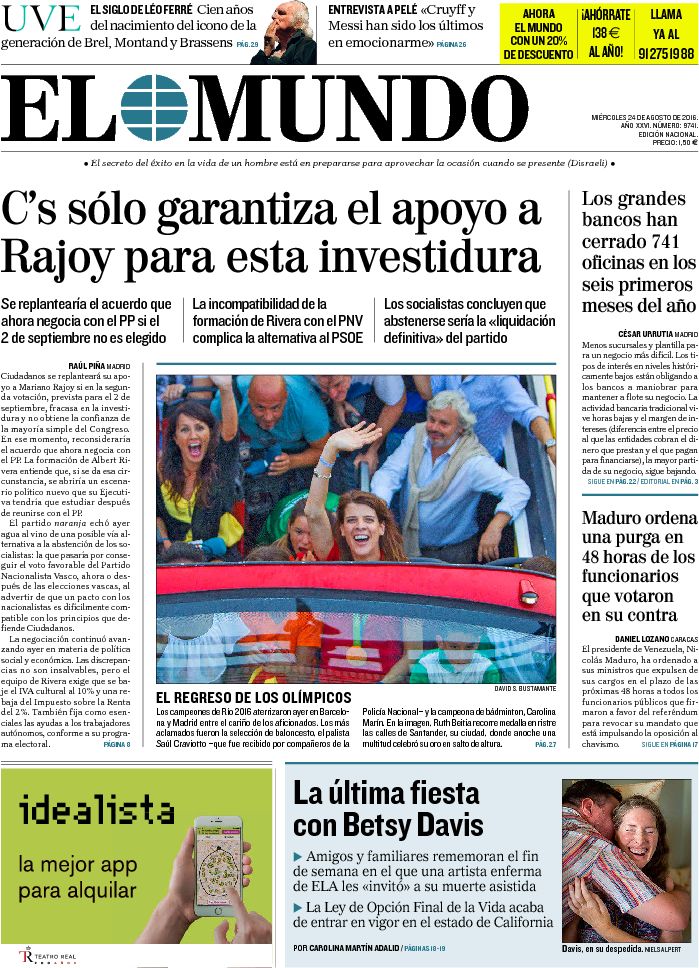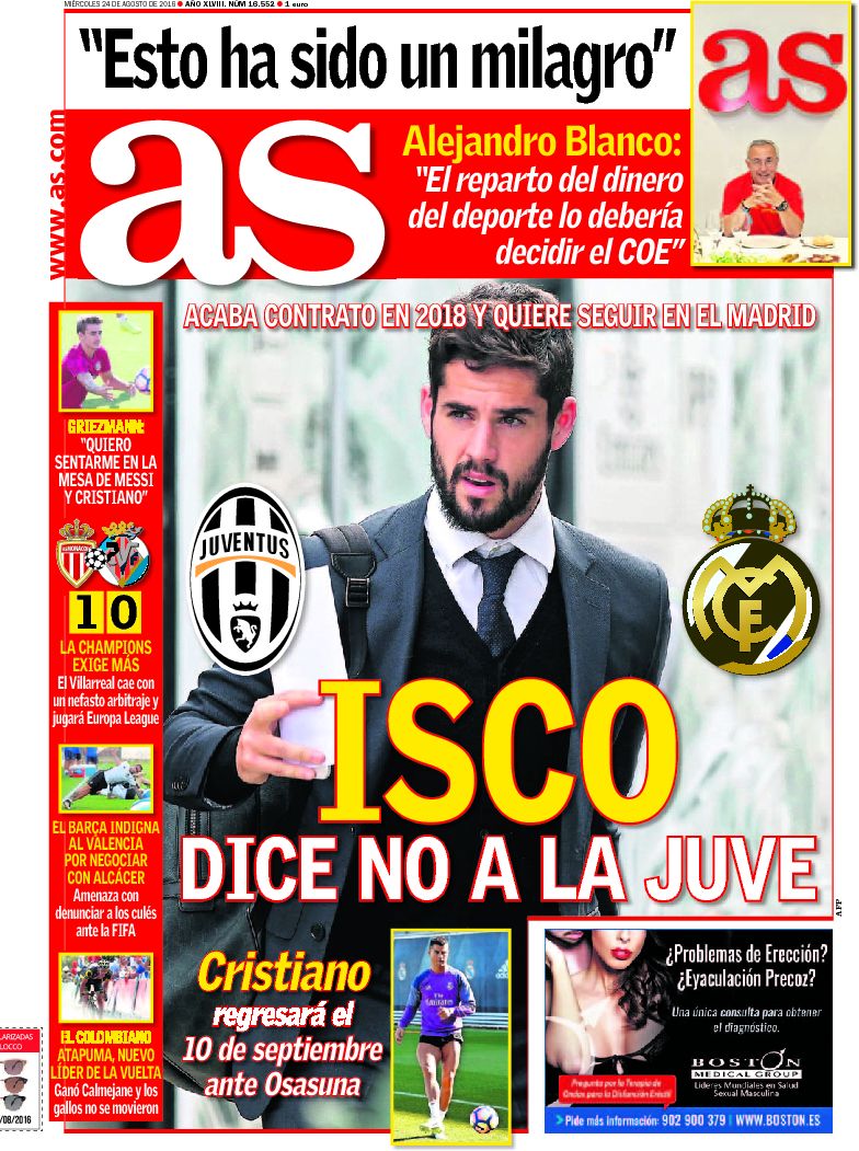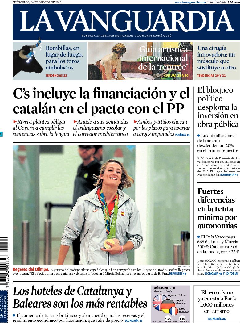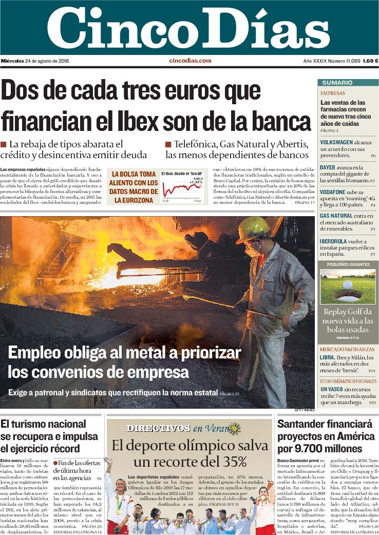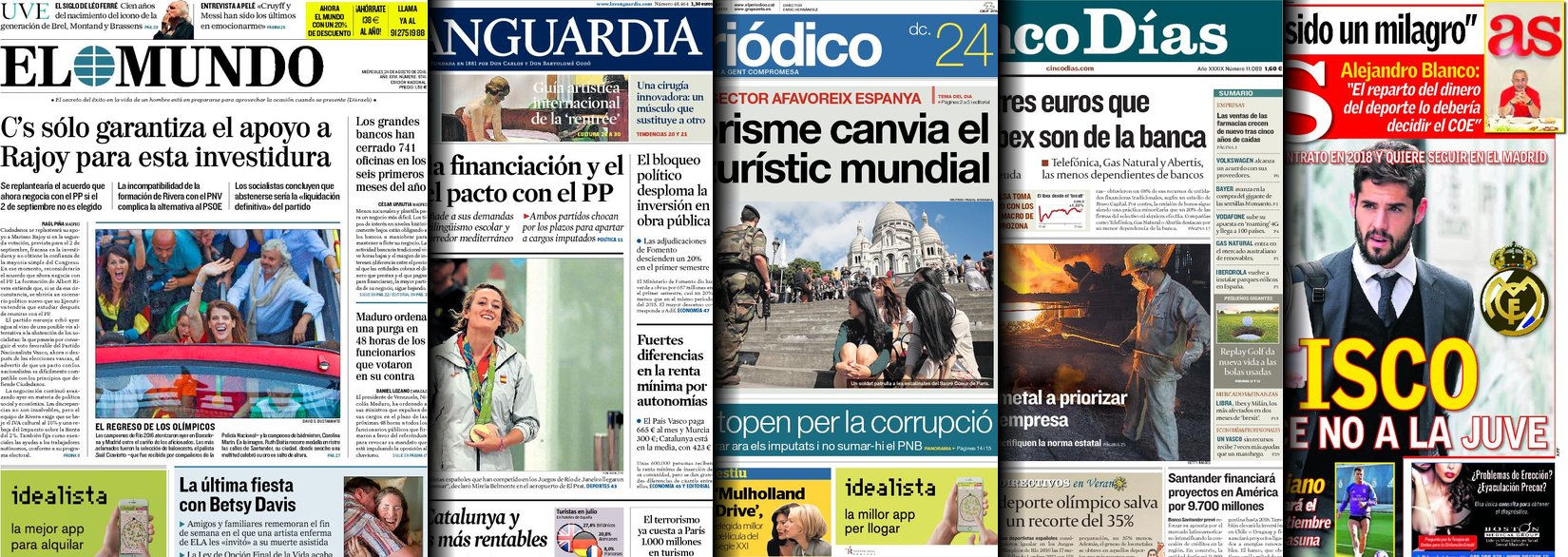 Portadas de los diarios ABC, As, Cinco Días, El Periódico y La Vanguardia.