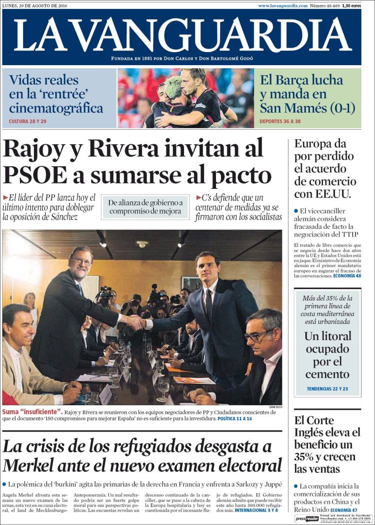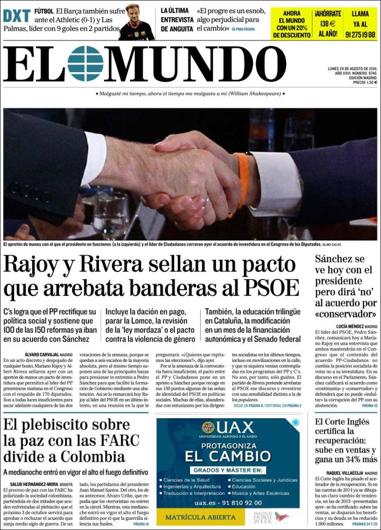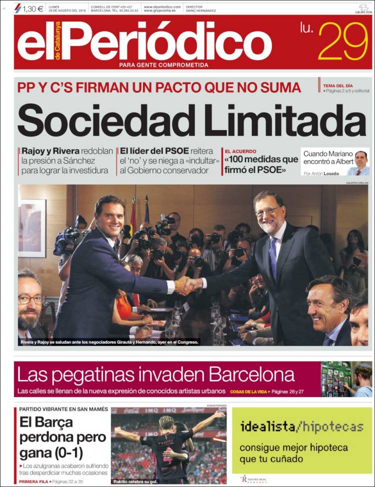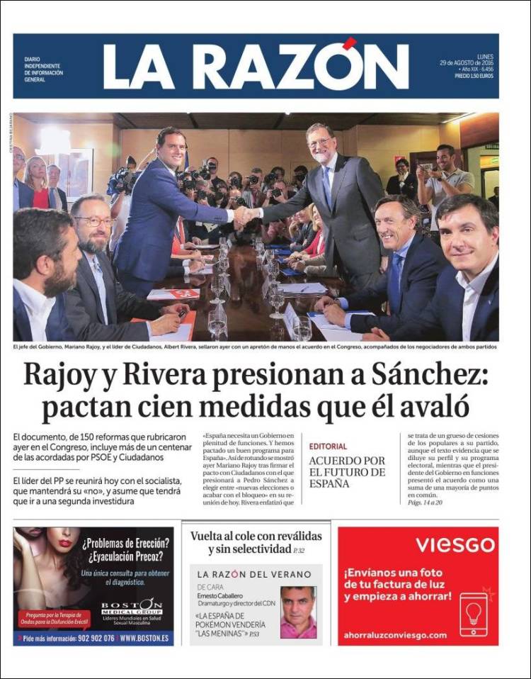 "Rajoy y Rivera presionan a Sánchez: pactan cien medidas que él avaló"