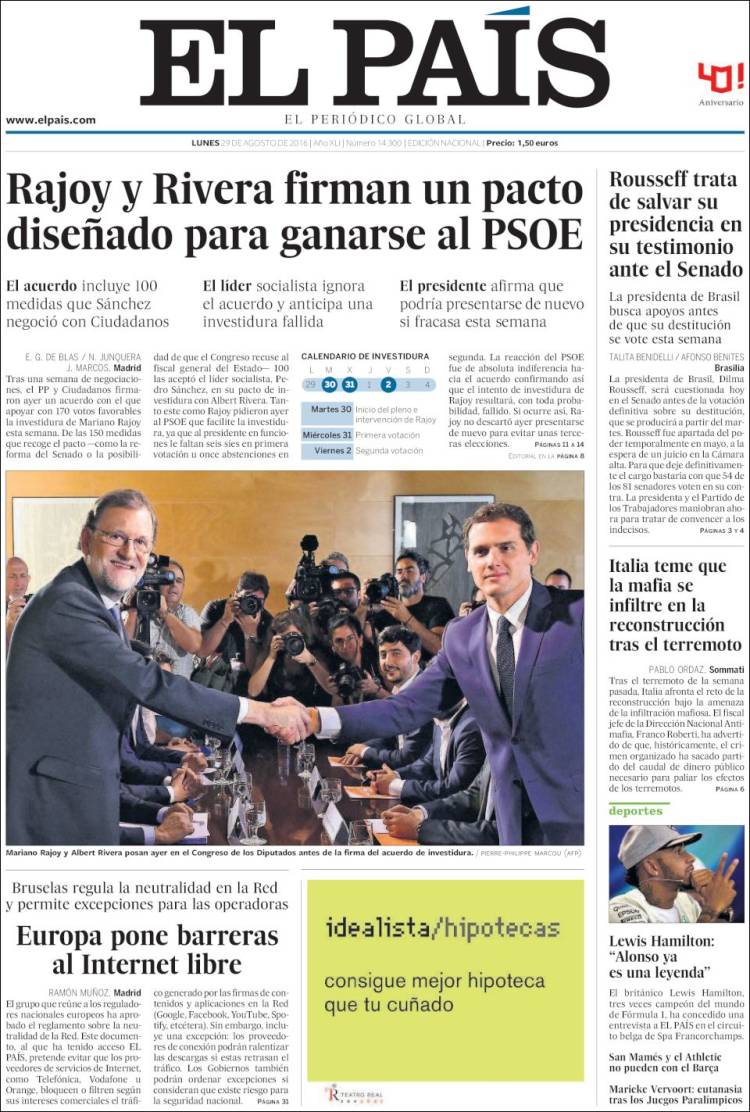 "Rajoy y Rivera sellan un pacto que arrebata banderas al PSOE"