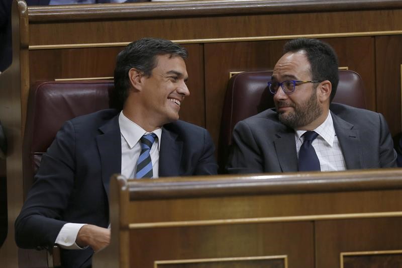 Pedro Sánchez, líder del PSOE, se dirige a la presidenta del Congreso de los Diputados, Ana Pastor.