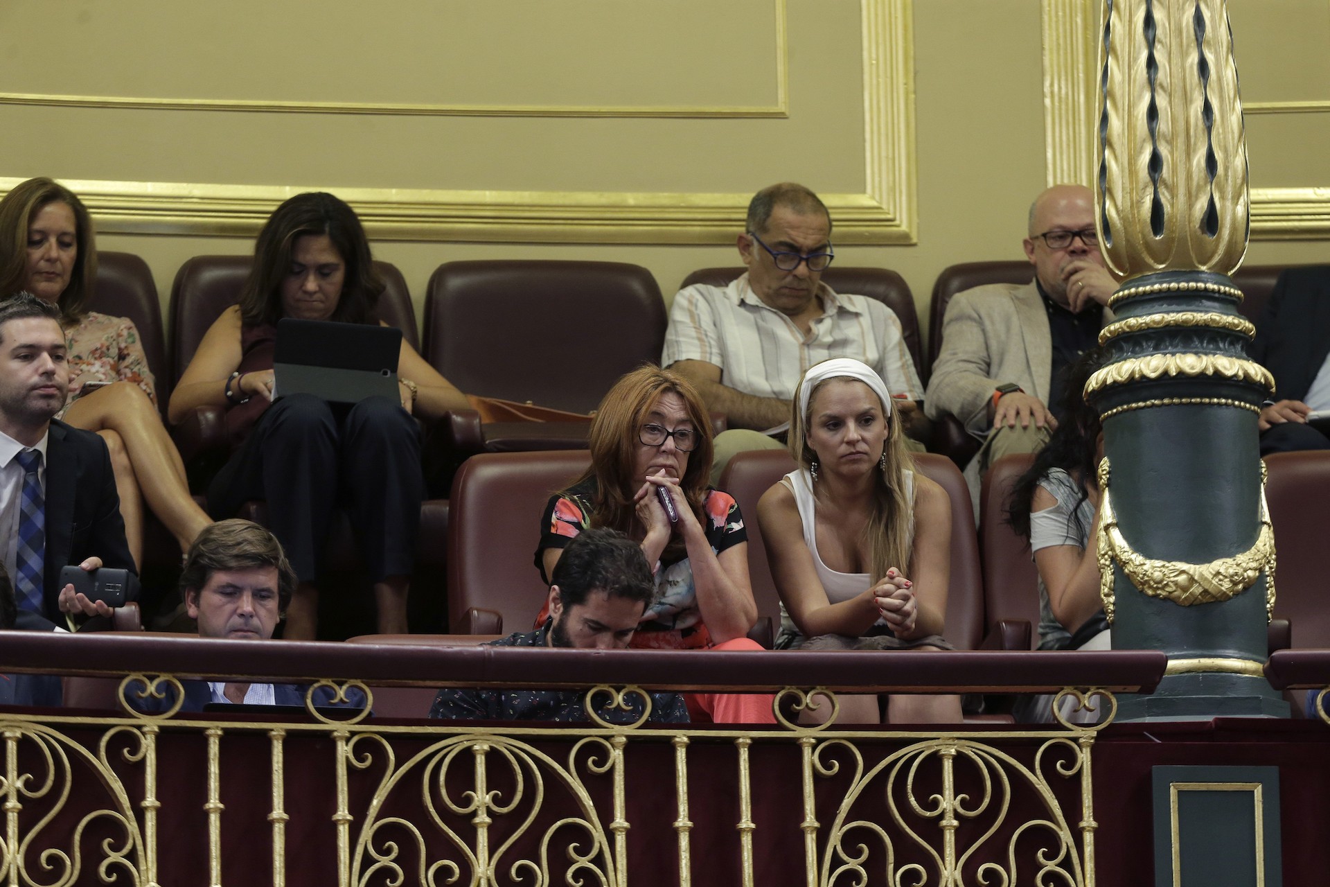 Luisa Turrión, madre del líder de Podemos, Pablo Iglesias, sigue desde la tribuna de invitados la segunda sesión del debate de investidura.