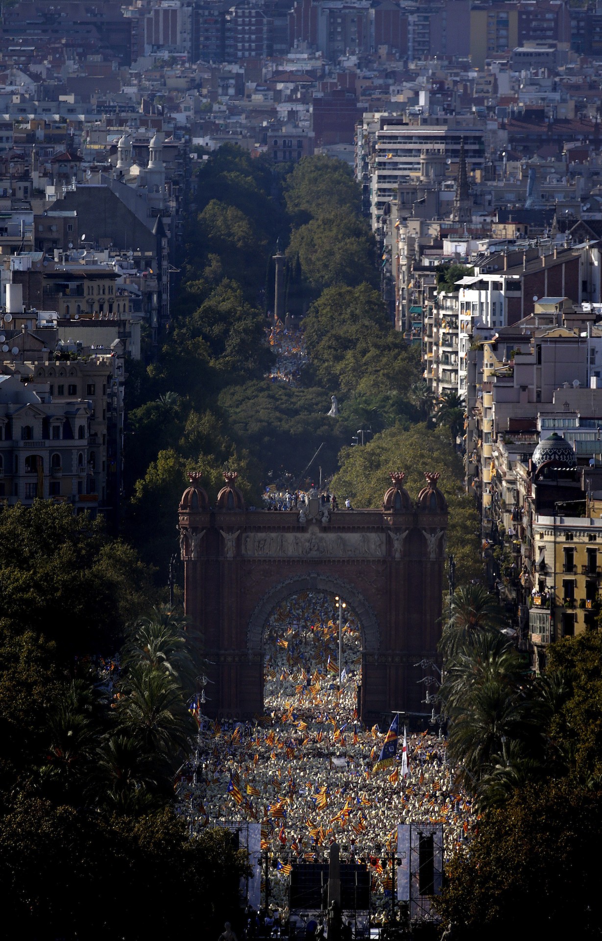 El arco del triunfo de la capital catalana rodeado de participantes en la manifestación separatista.