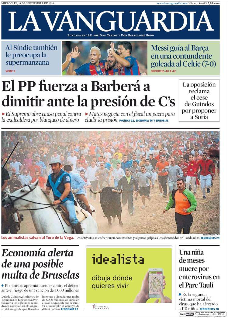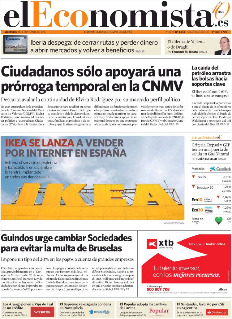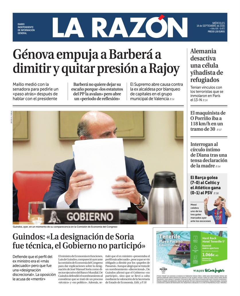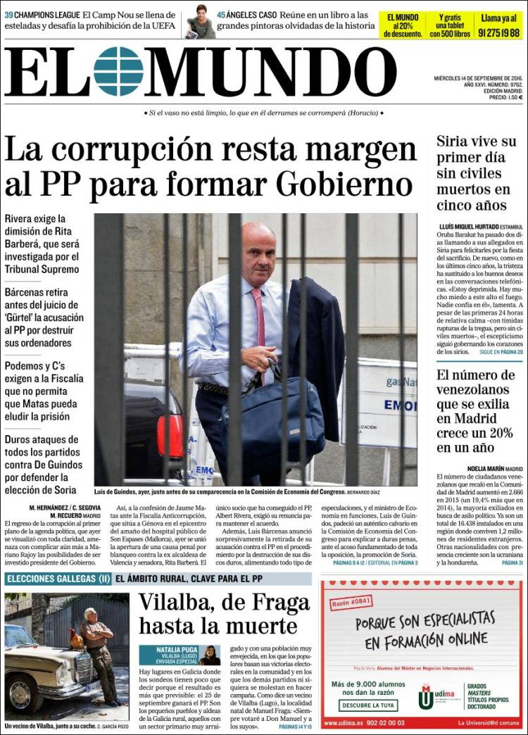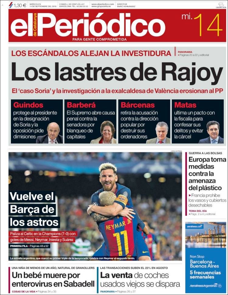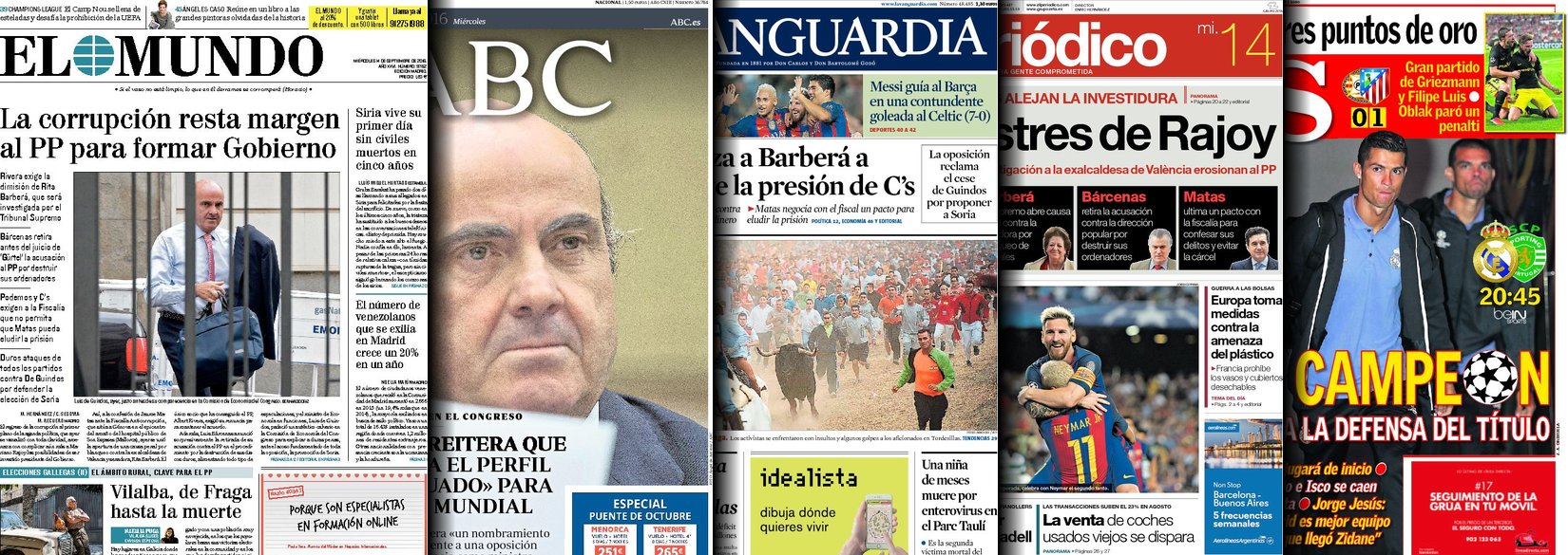 Portadas de los diarios El Mundo, El País, ABC, La Razón, La Vanguardia, El Periódico, Cinco Días, El Economista, Expansión, Marca, As, Mundo Deportivo y Sport.