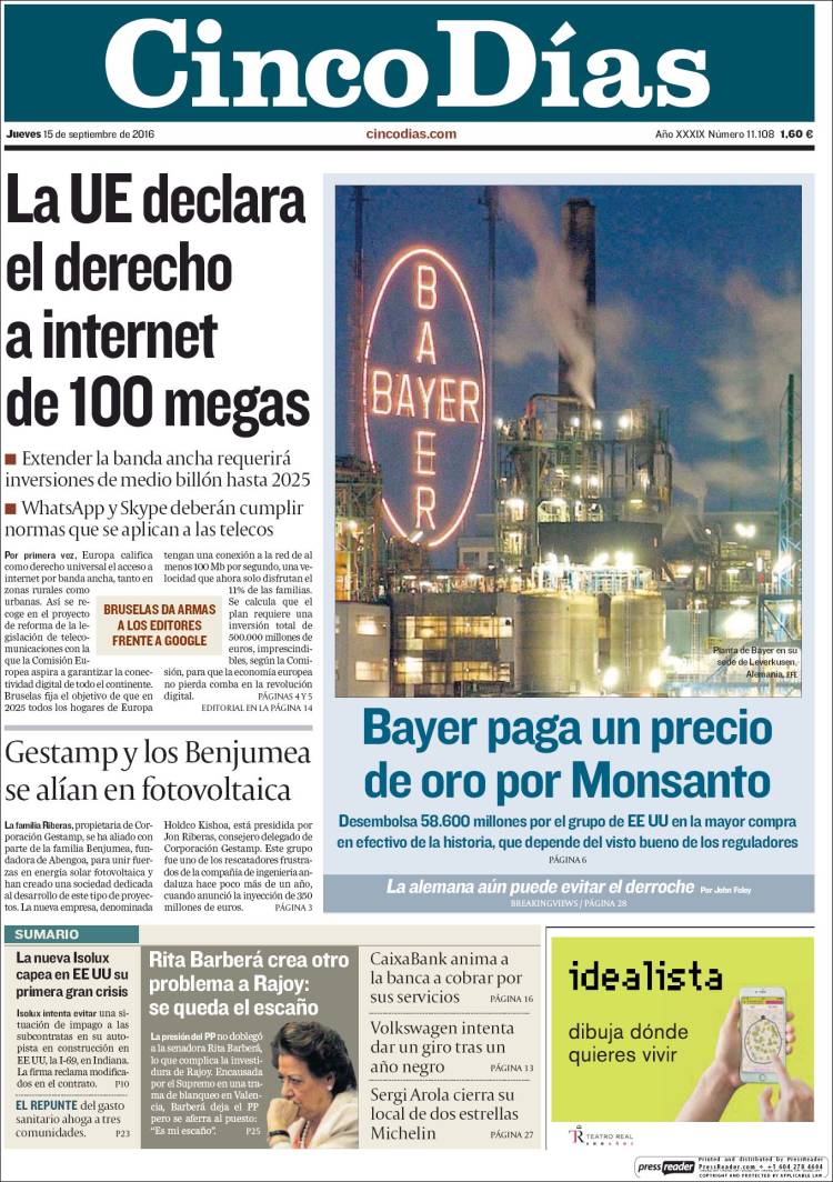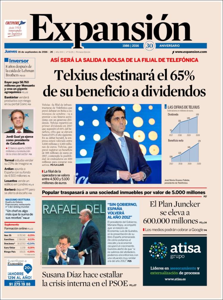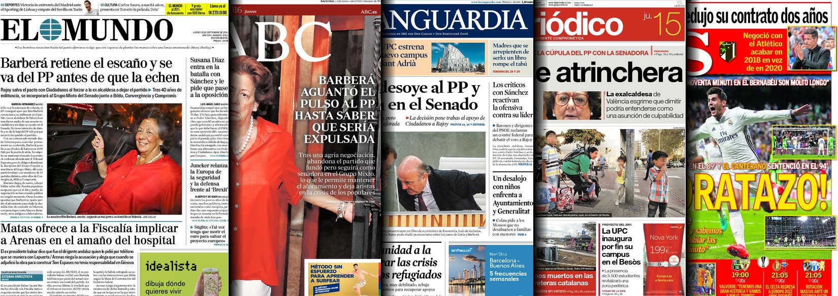 Portadas de los diarios El Mundo, El País, ABC, La Razón, La Vanguardia, El Periódico, Cinco Días, El Economista, Expansión, Marca, As, Mundo Deportivo y Sport.