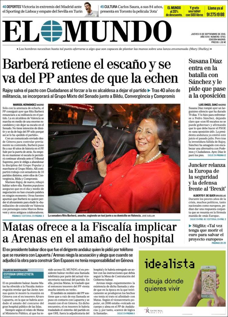 "Barberá retiene el escaño y de va del PP antes de que la echen"