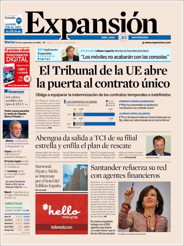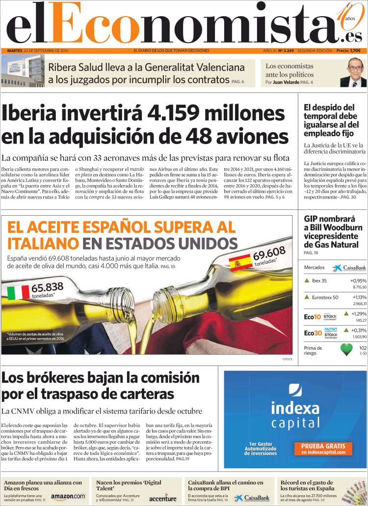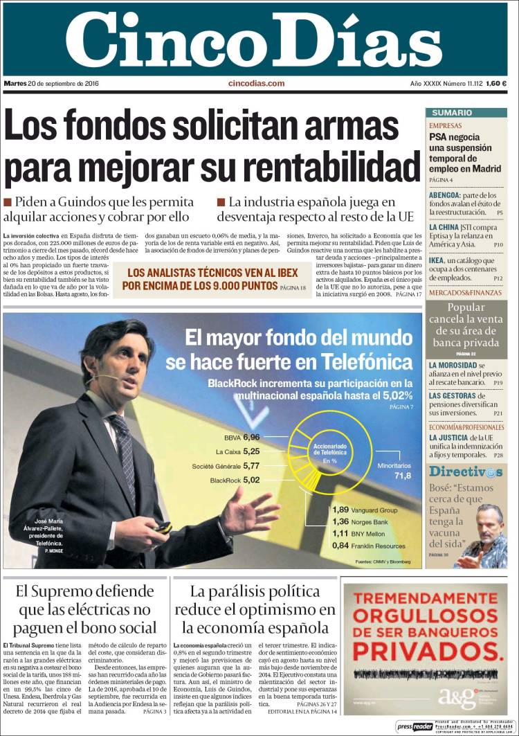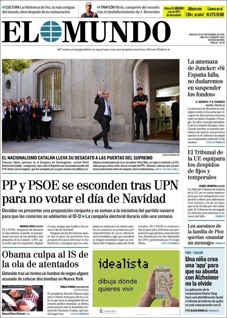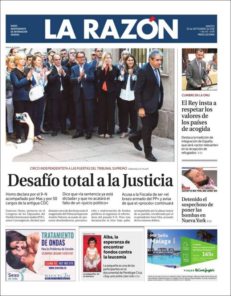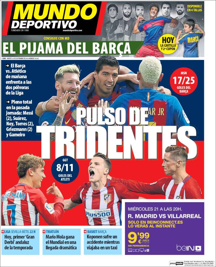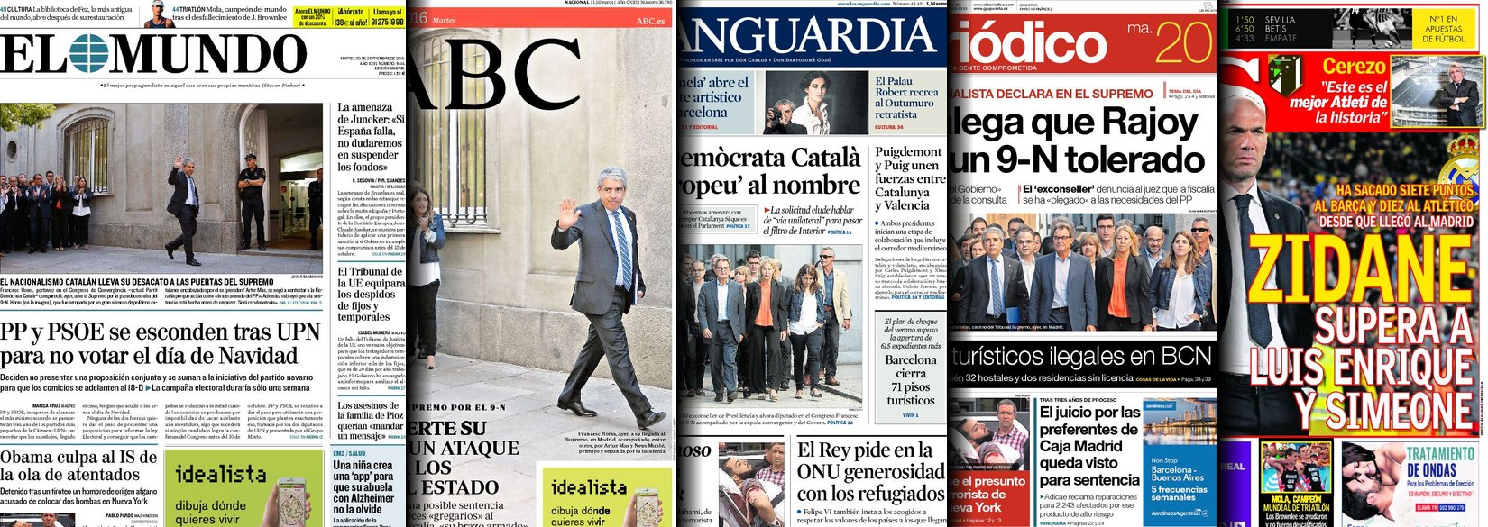 Portadas de los diarios El Mundo, El País, ABC, La Razón, La Vanguardia, El Periódico, Cinco Días, El Economista, Expansión, Marca, As, Mundo Deportivo y Sport.