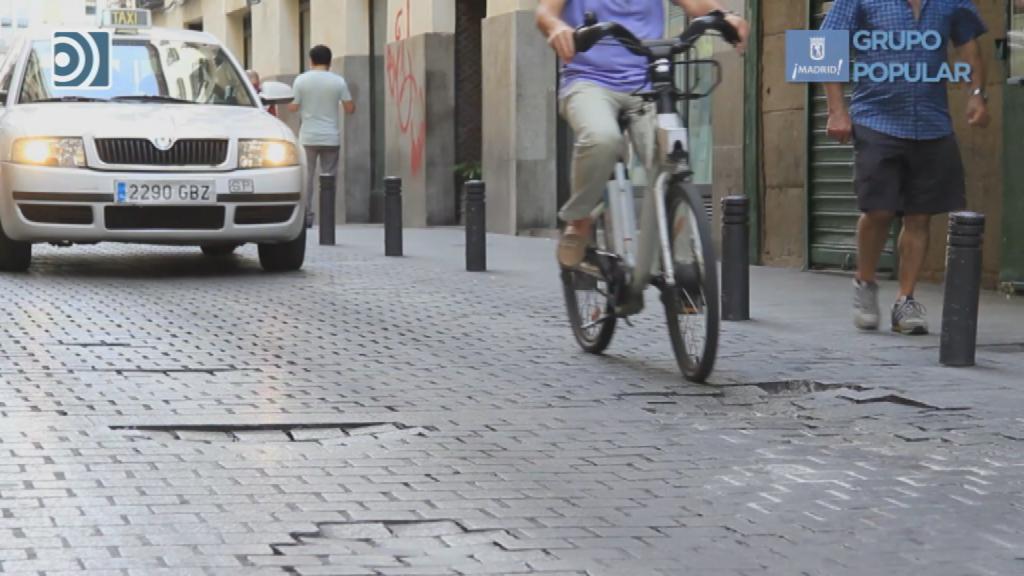 El PP madrileño ha querido denunciar en un vídeo el mal estado del asfalto y las calles madrileñas por las que tienen que circular ciclistas y conductores.