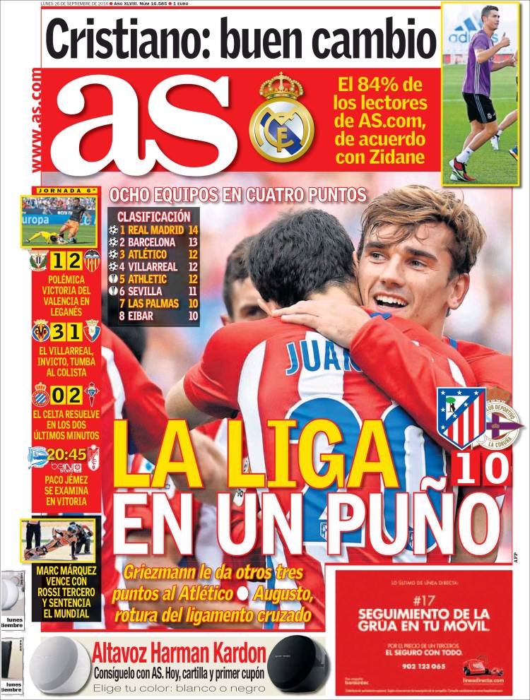 Portadas de los diarios El Mundo, El País, ABC, La Razón, La Vanguardia, Cinco Días, El Economista, Expansión, Marca, As, Mundo Deportivo y Sport.