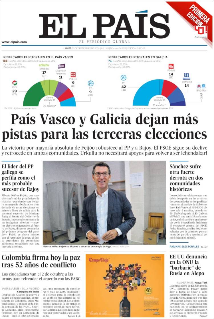 "País Vasco y Galicia dejan más pistas para las terceras elecciones"