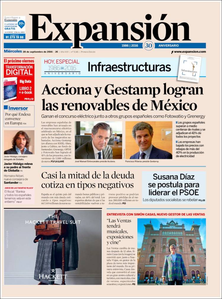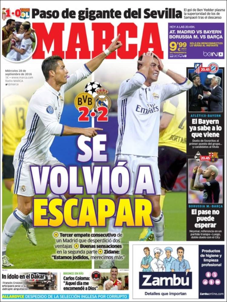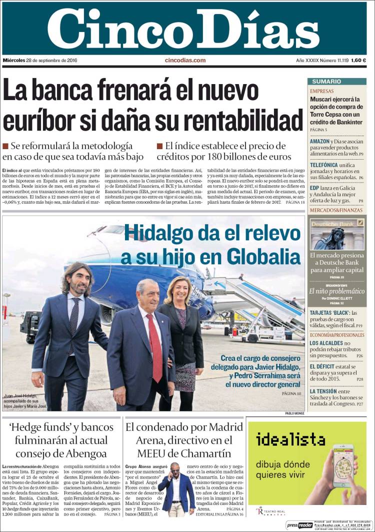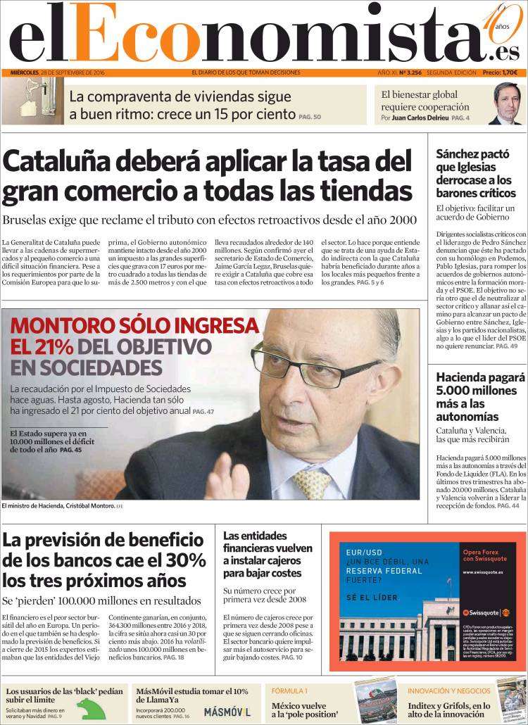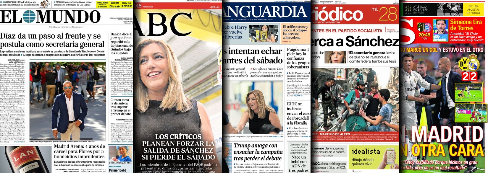 Portadas de los diarios El Mundo, El País, ABC, La Razón, La Vanguardia, Cinco Días, El Economista, Expansión, Marca, As, Mundo Deportivo y Sport.