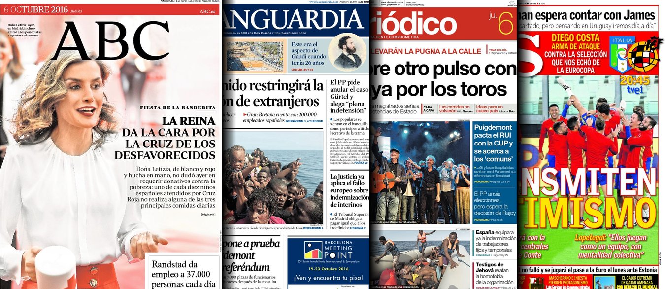 Portadas de los diarios ABC, As, El Periódico y La Vanguardia.