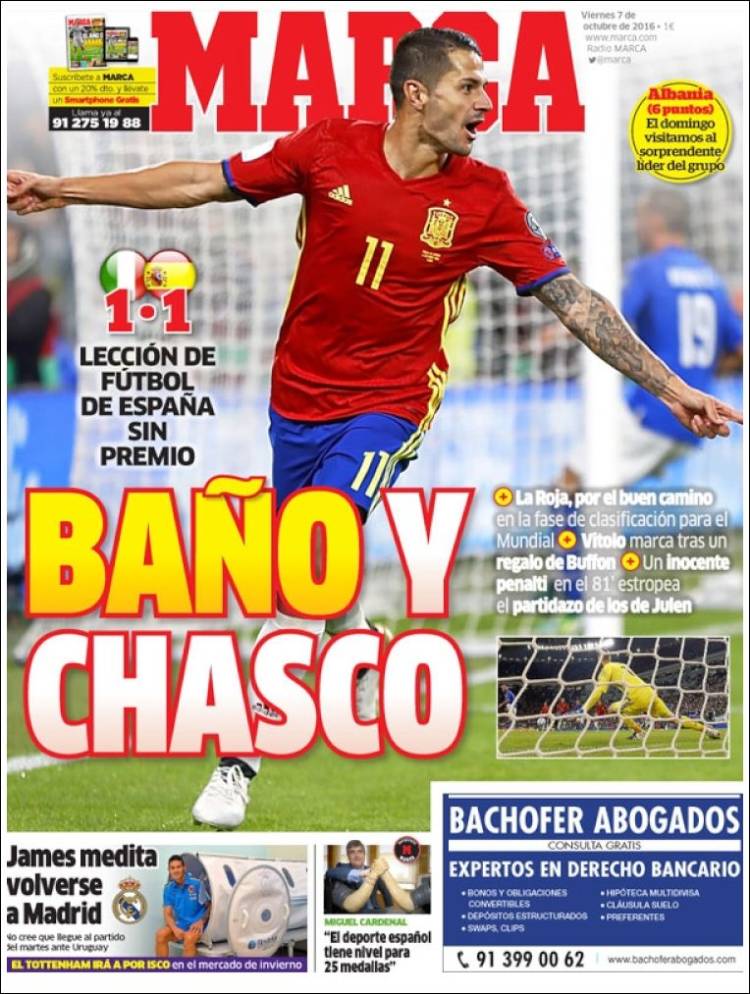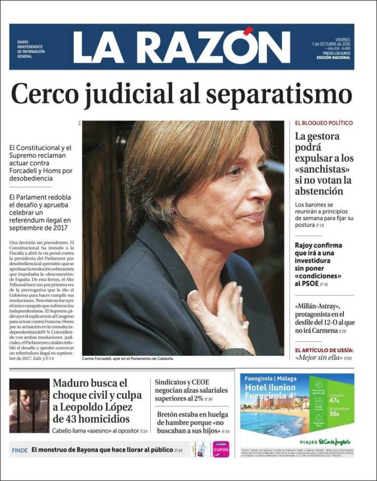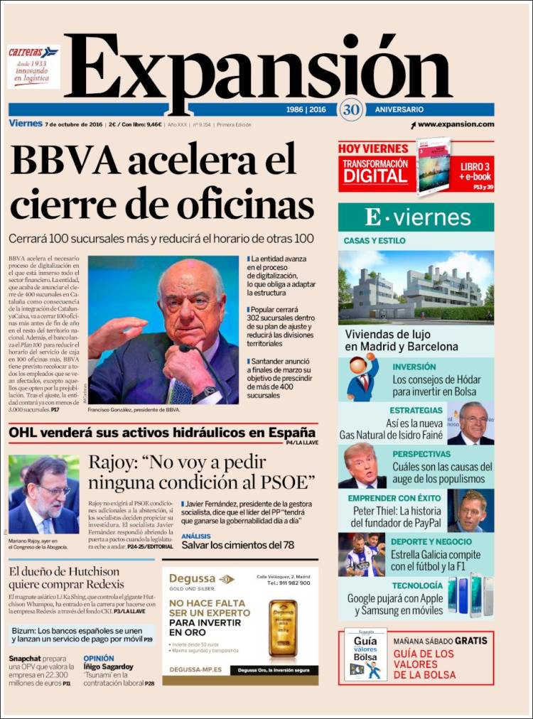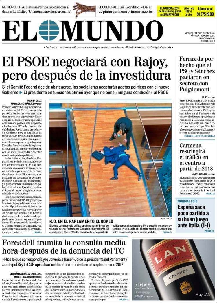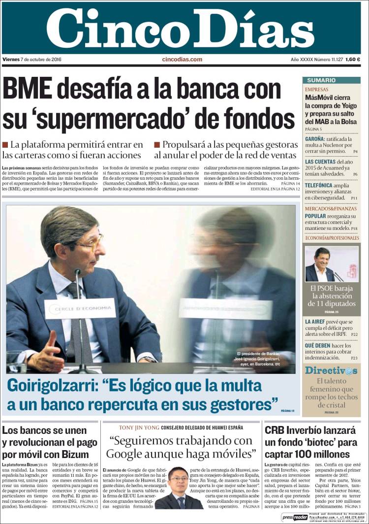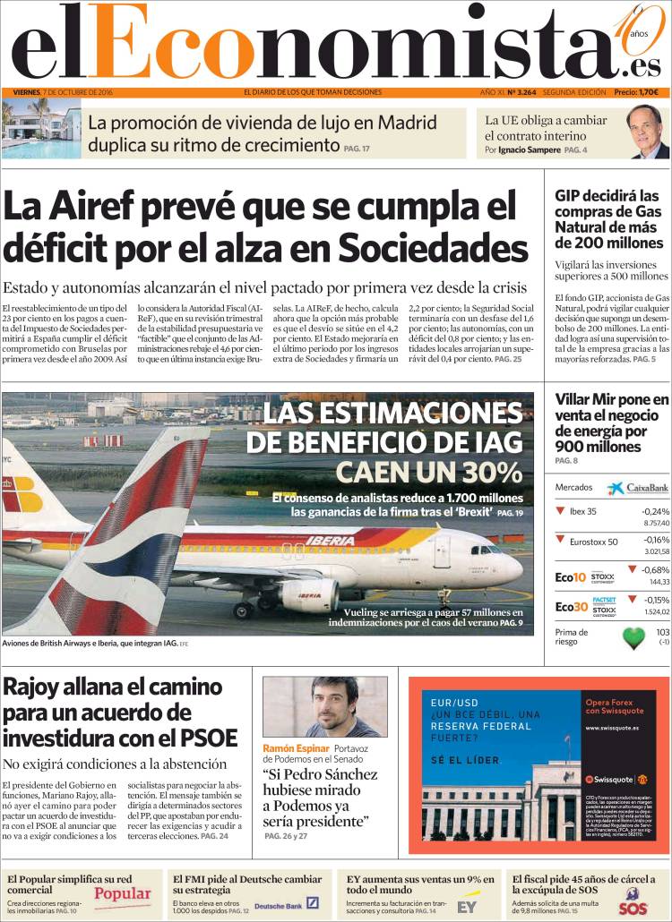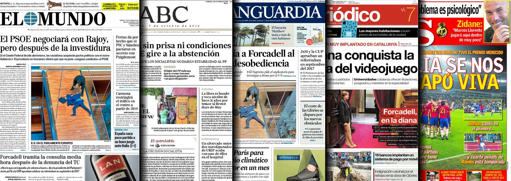 Portadas de los diarios El Mundo, El País, ABC, La Razón, La Vanguardia, Cinco Días, El Economista, Expansión, Marca, As, Mundo Deportivo y Sport.