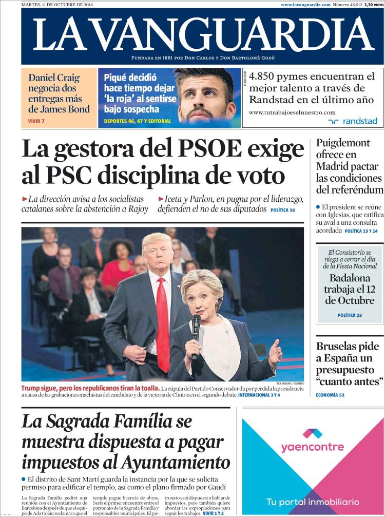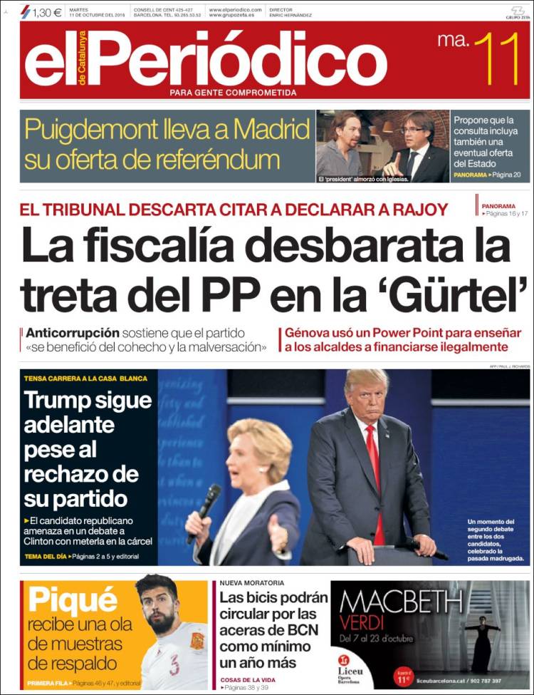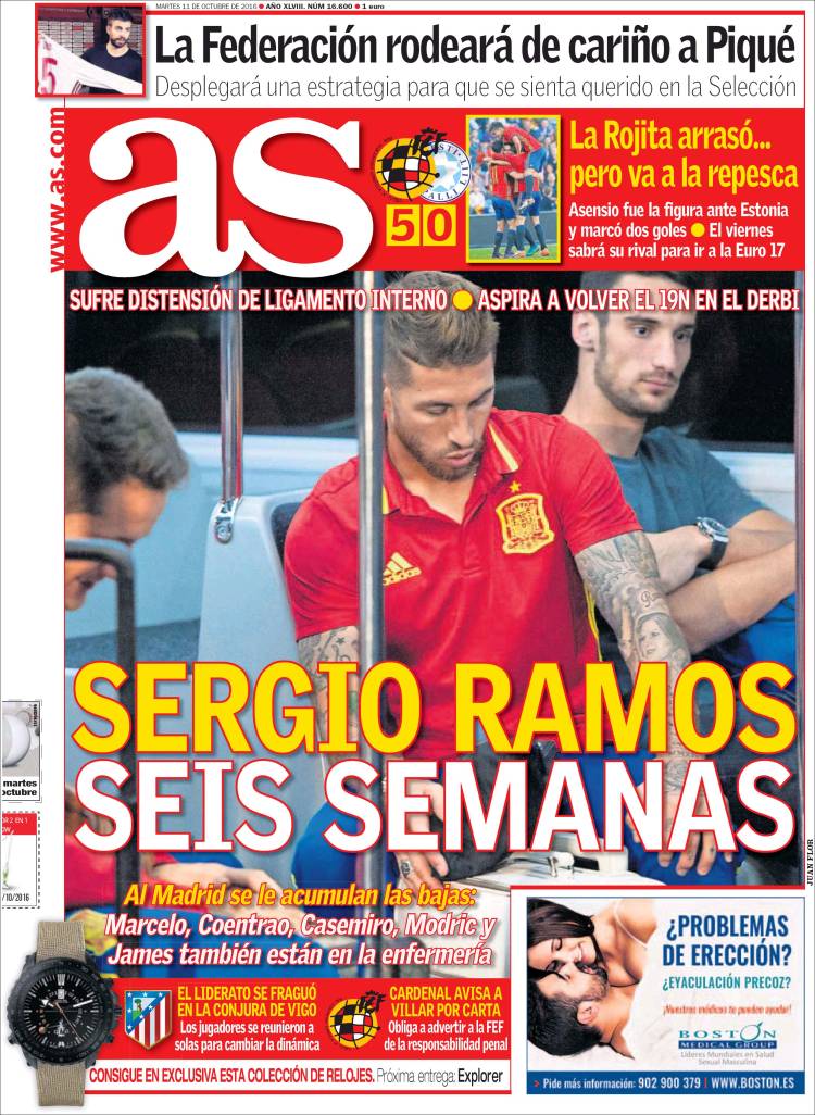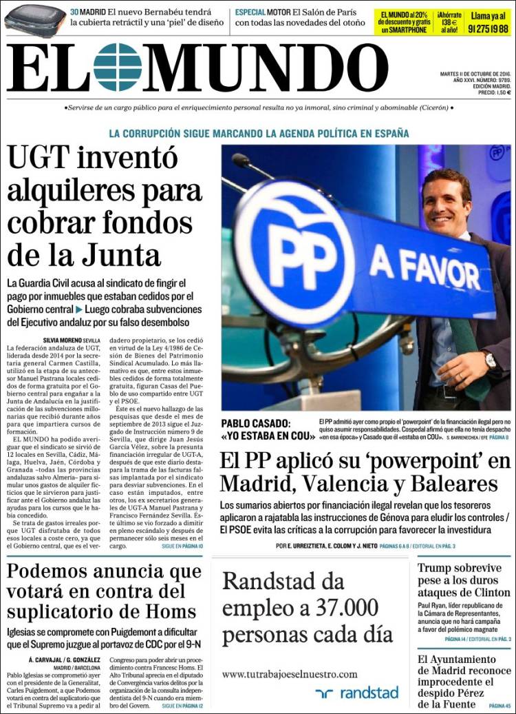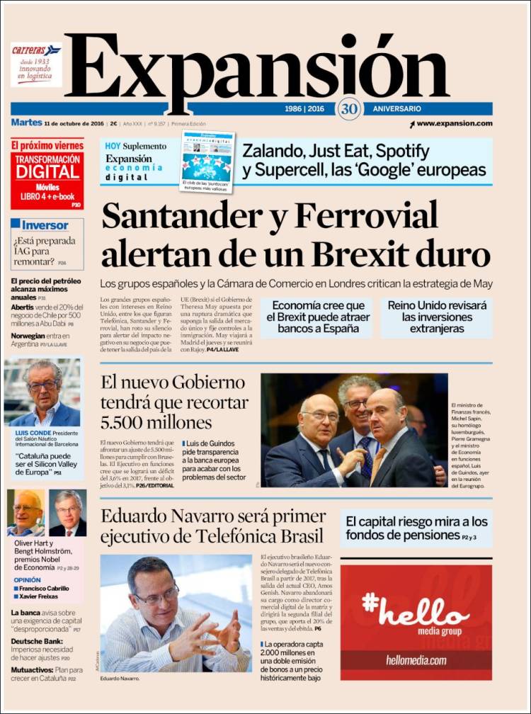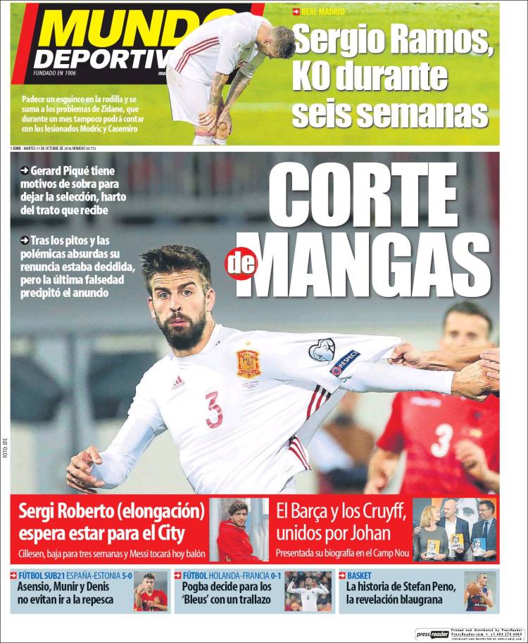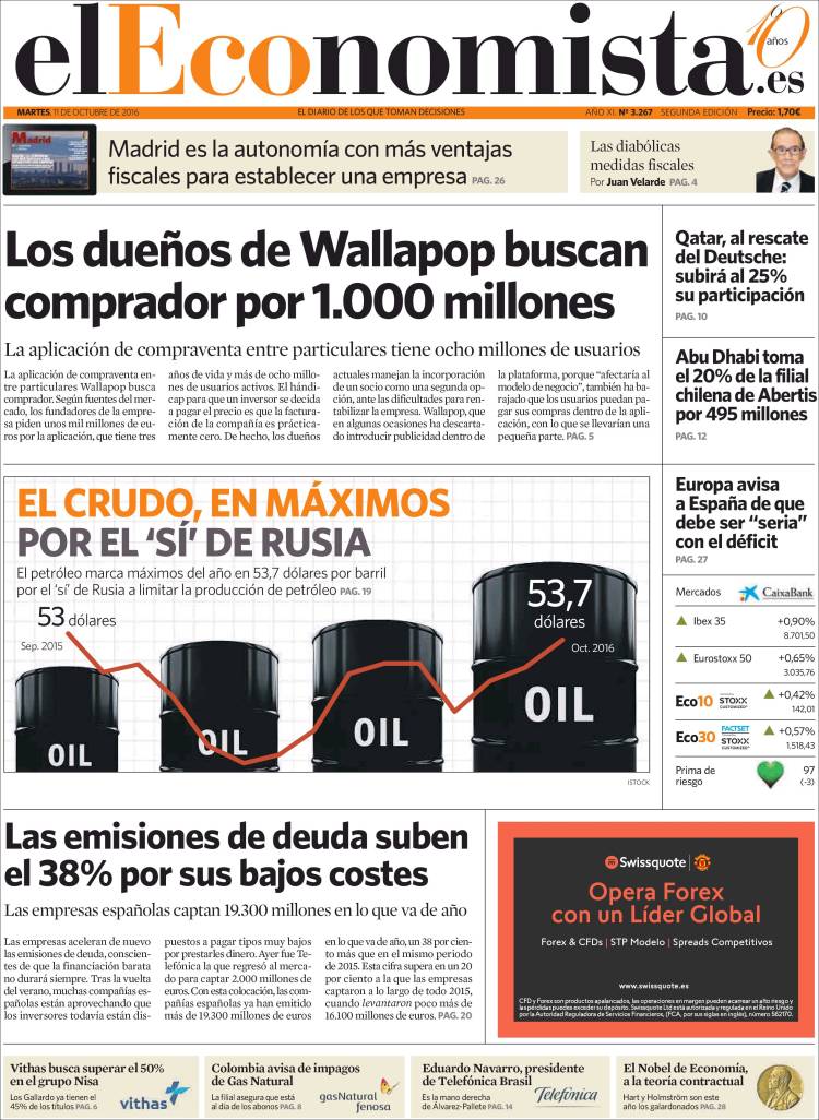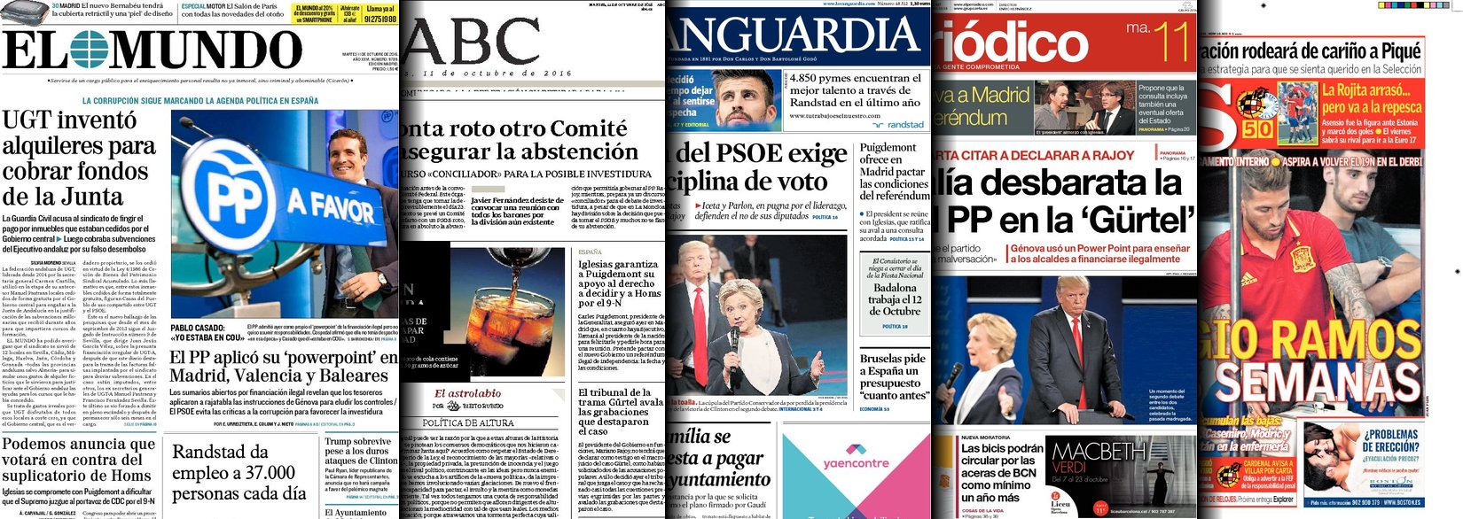 Portadas de los diarios El Mundo, El País, ABC, La Razón, La Vanguardia, Cinco Días, El Economista, Expansión, Marca, As, Mundo Deportivo y Sport.