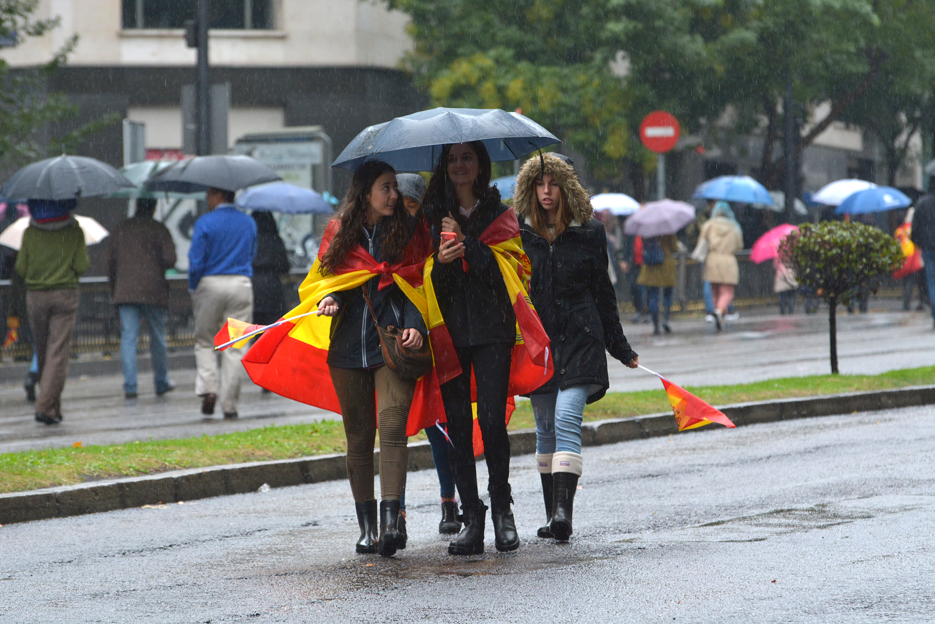 Ambiente festivo y mucha lluvia durante el desfile de las Fuerzas Armadas del 12-O de 2016