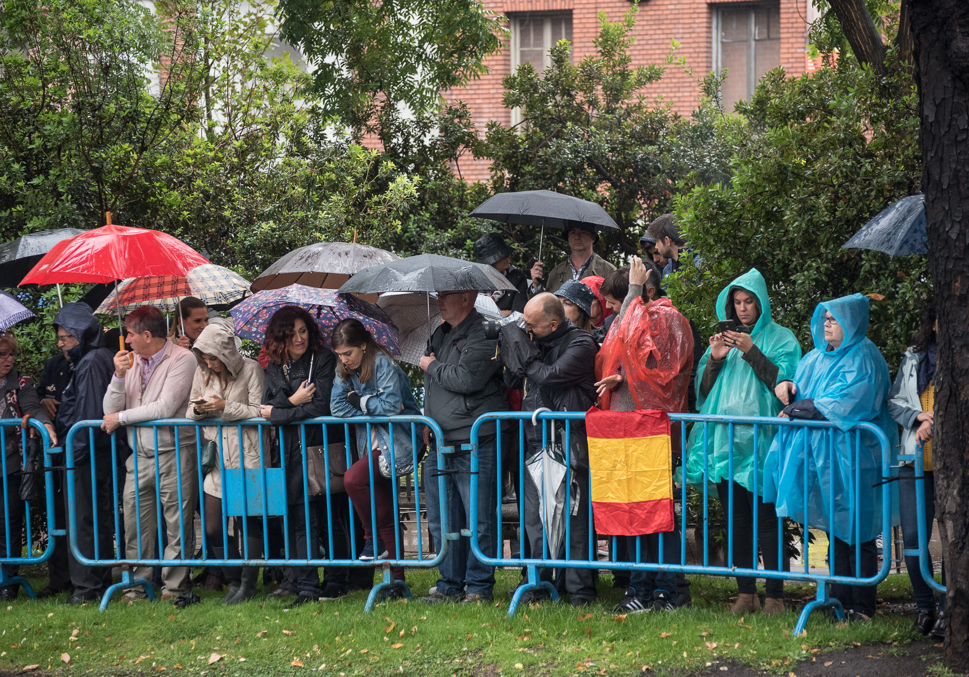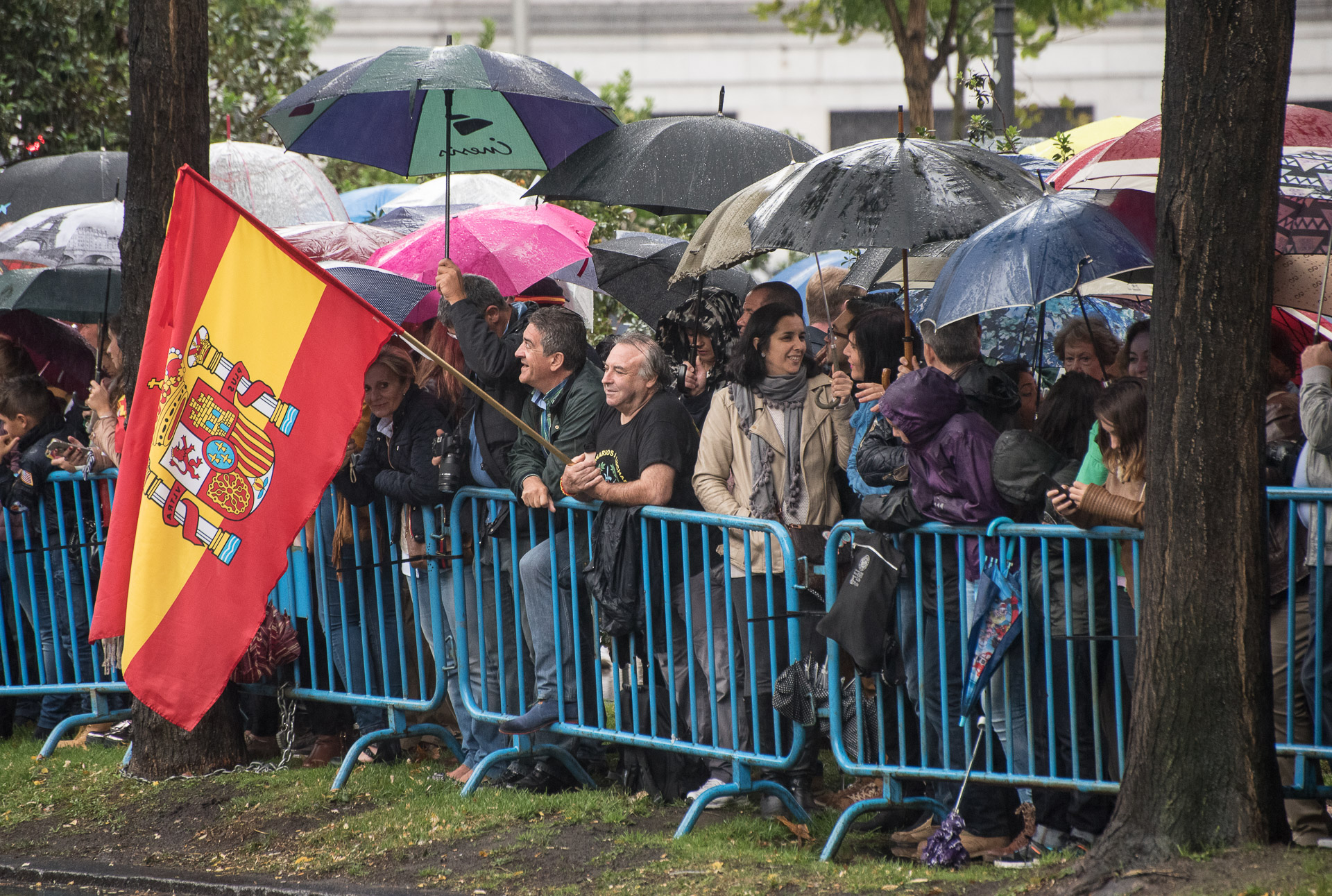 La lluvia no ha impedido que miles de personas hayan acudido a ver el desfile y disfrutar del desfile de las Fuerzas Armadas durante el 12 de octubre en Madrid.