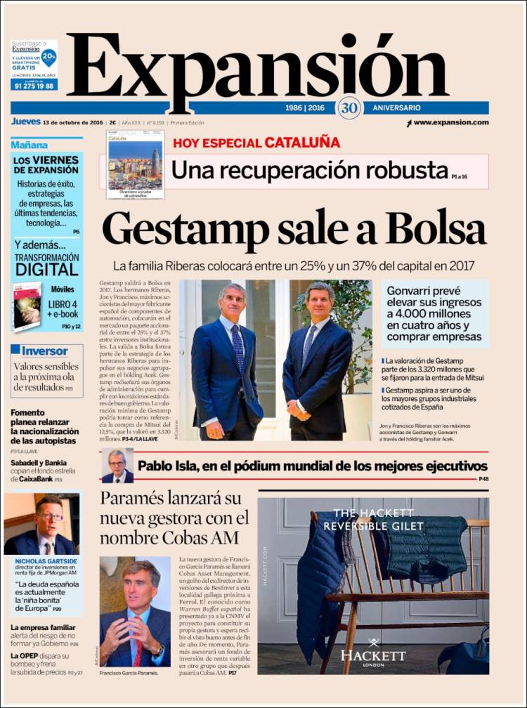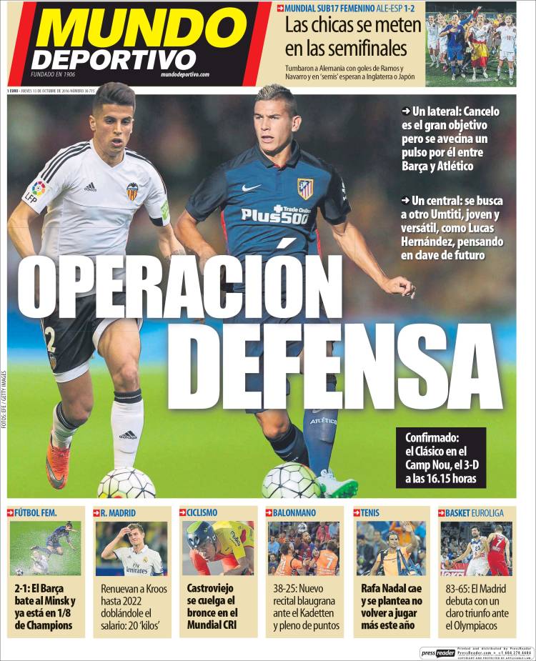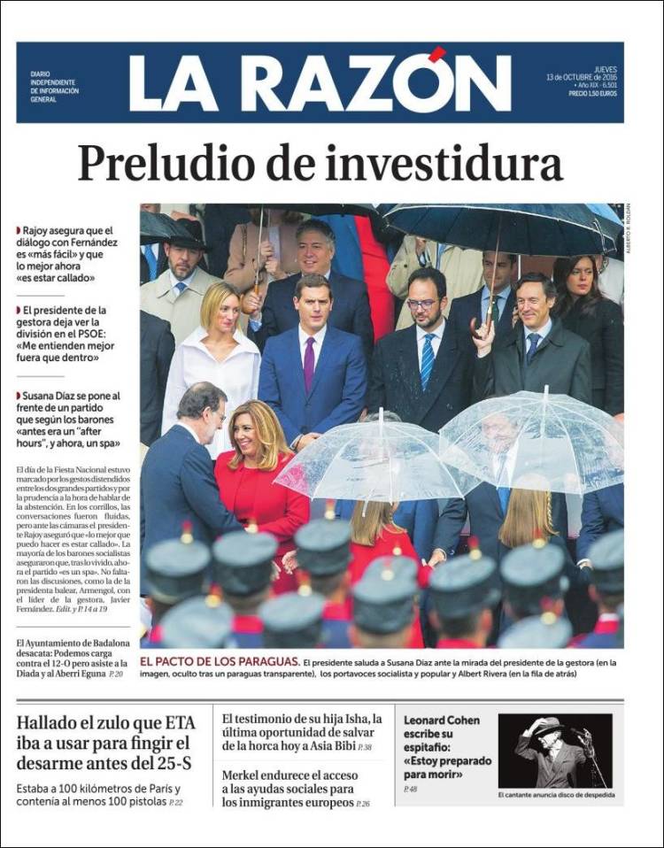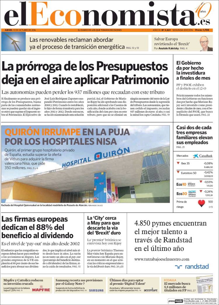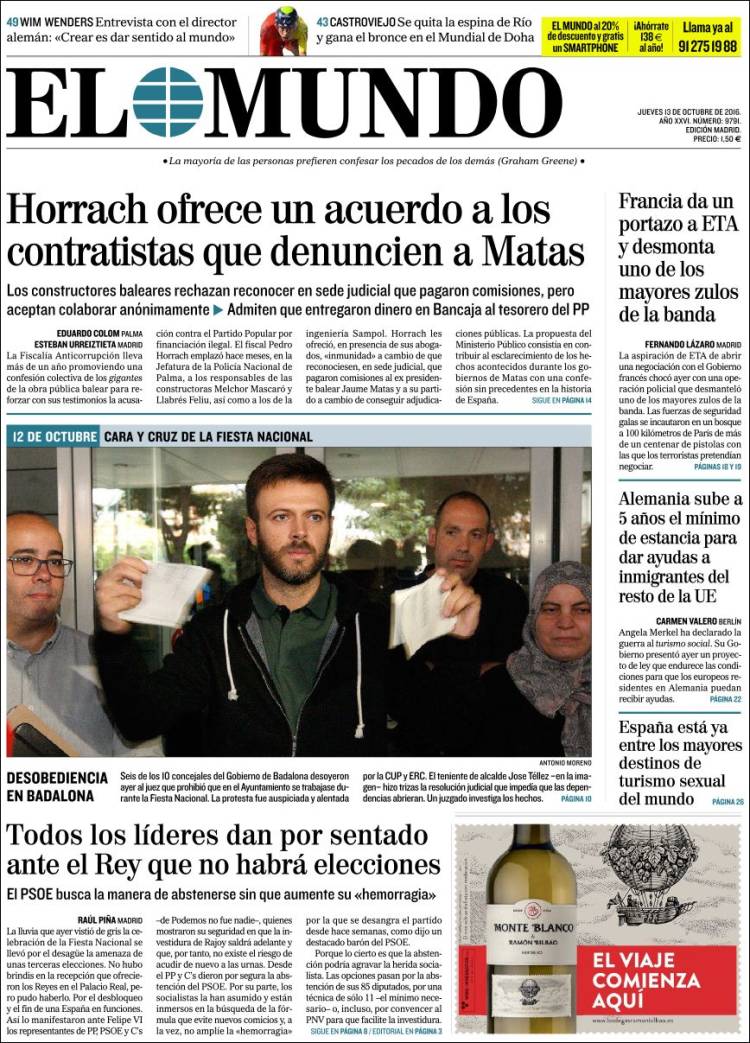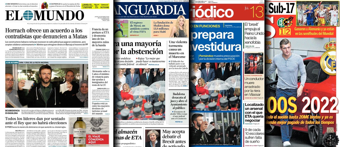 Portadas de los diarios El Mundo, El País, ABC, La Razón, La Vanguardia, Cinco Días, El Economista, Expansión, Marca, Mundo Deportivo y Sport.
