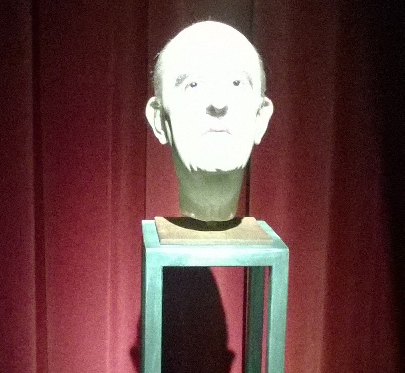 Reproducción de la cabeza de Francisco Franco a la salida de la exposición en el Mercado del Borne