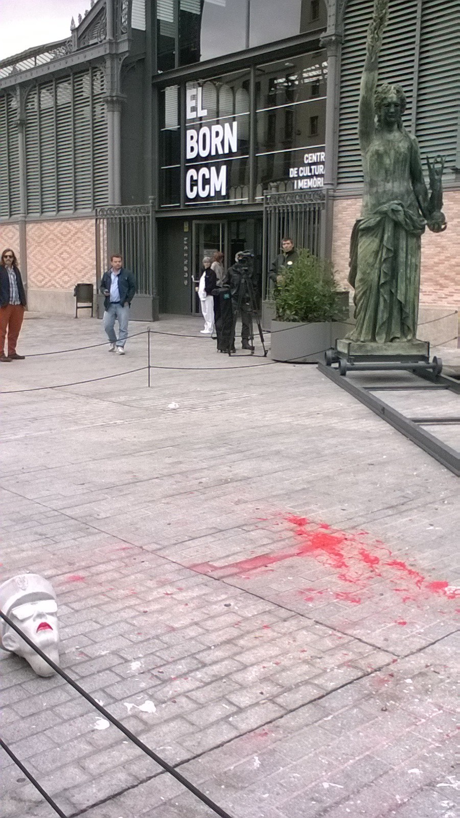 La Victoria y la cabeza de yeso de Franco a las puertas del Mercado del Borne