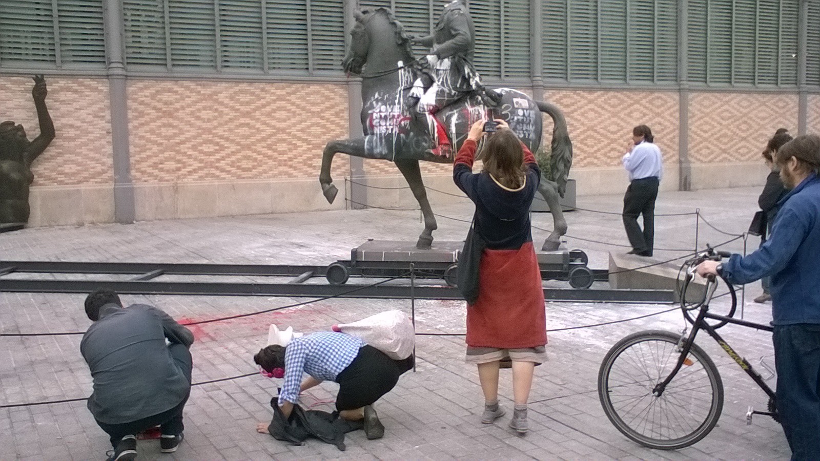 Momento en el que la estatua es retirada por los operarios del ayuntamiento