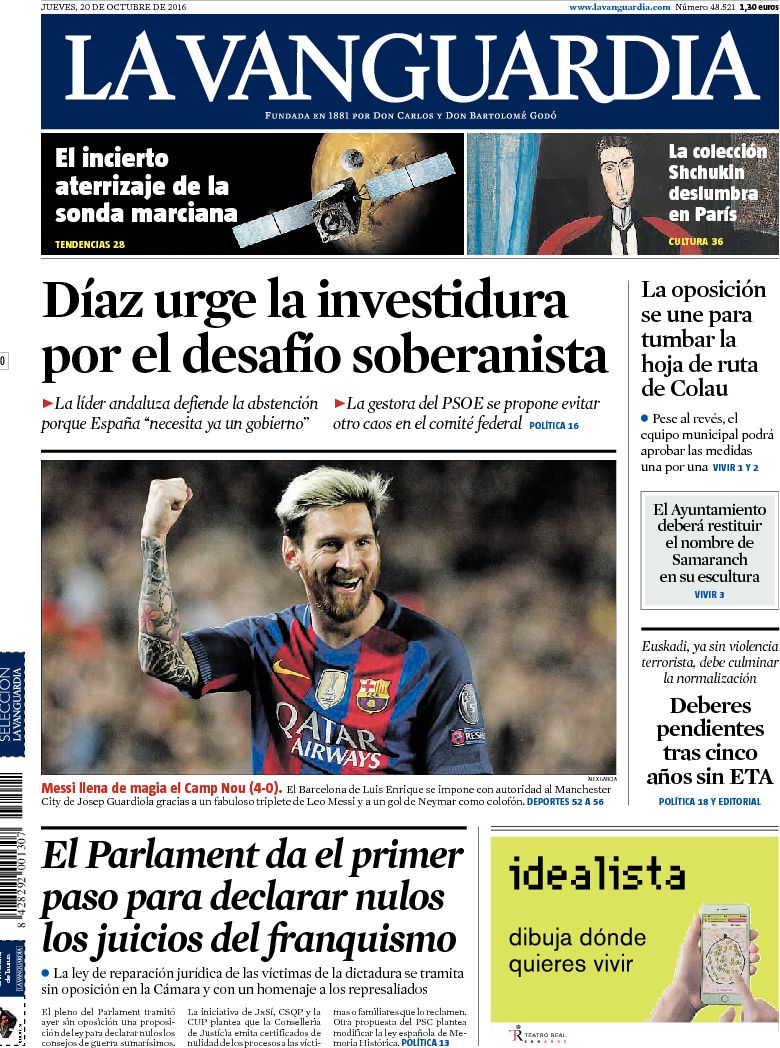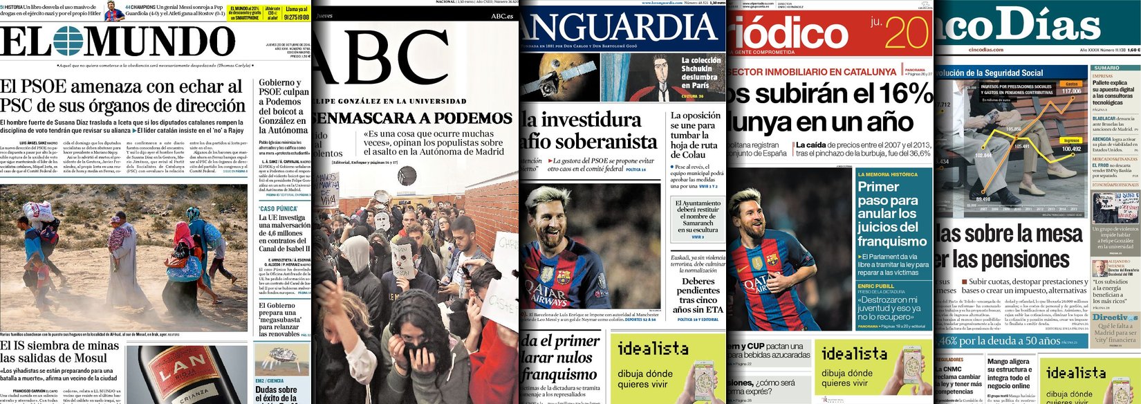 Portadas de los diarios ABC, As, Cinco Días, El Periódico y La Vanguardia.