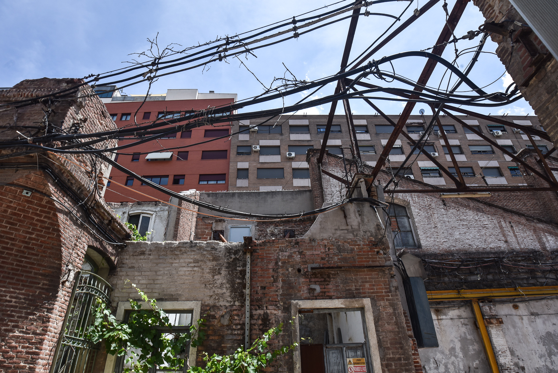 El interior derruído de una de las casas ubicadas en el interior del la cochera de Metro de Cuatro Caminos.