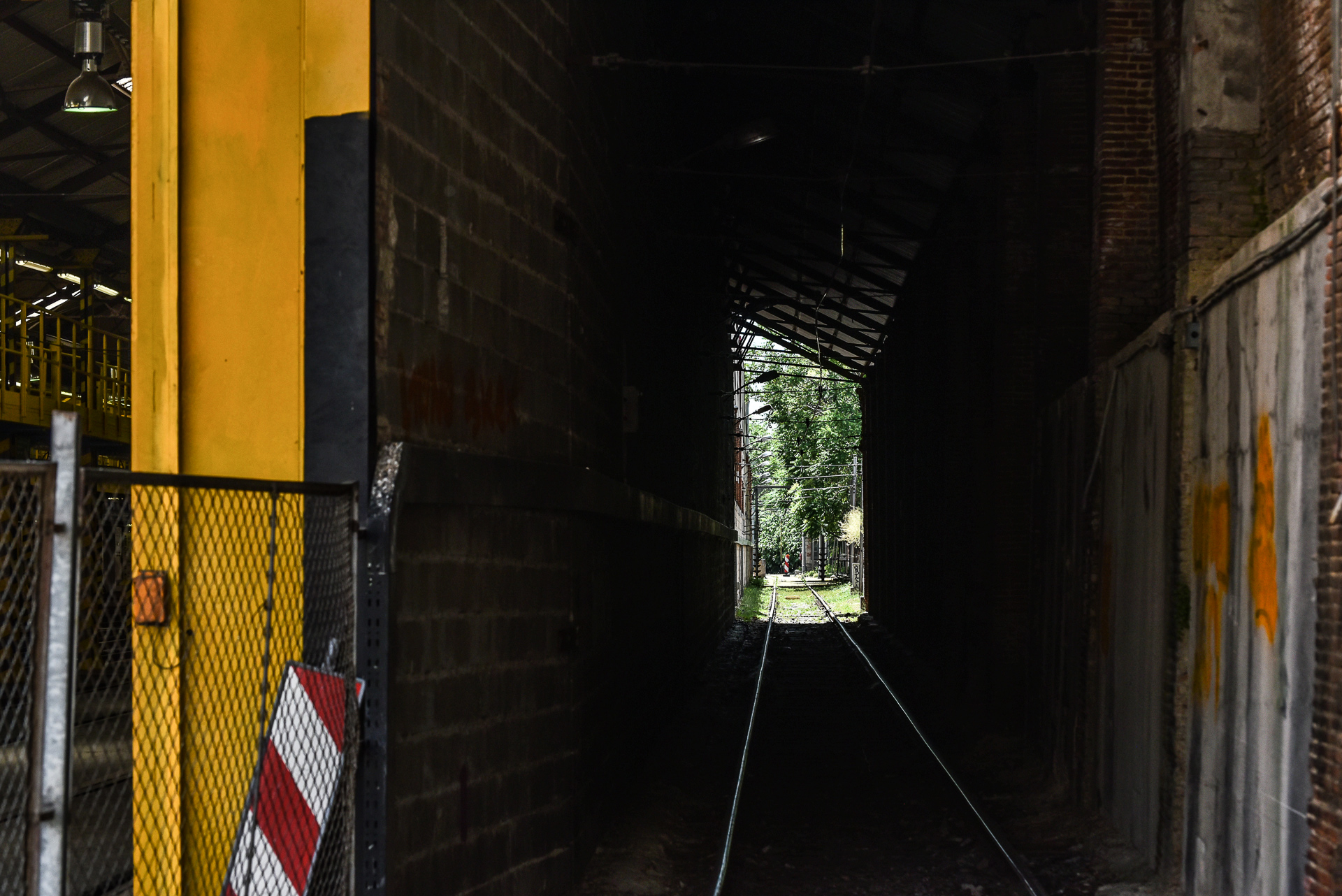 Una de la líneas de metro dentro del recinto de las cocheras, ahora en completo abandono y deshuso.