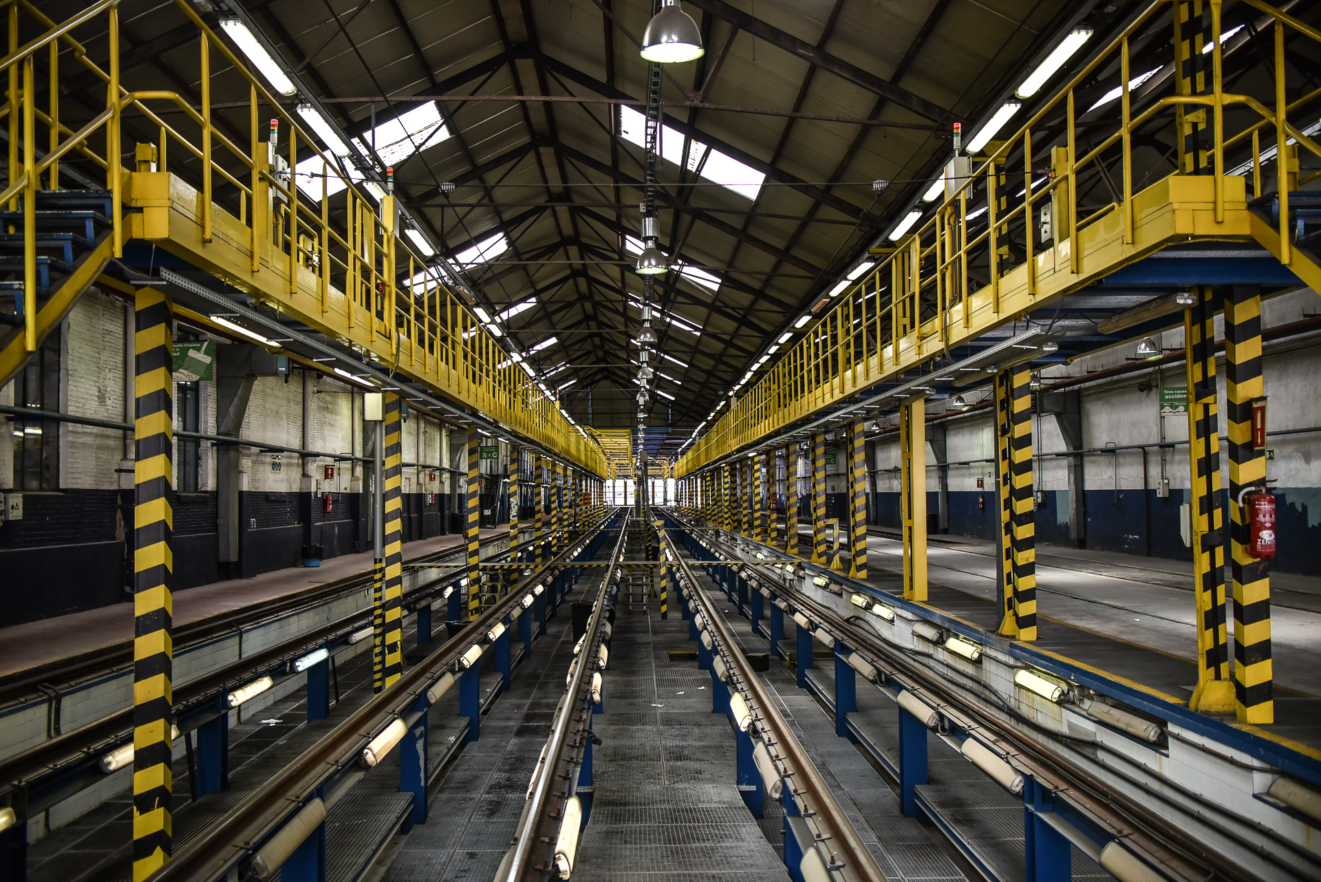 El interior de una de las naves de las cocheras de Metro de Cuatro Caminos.
