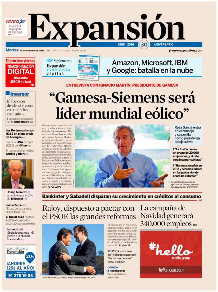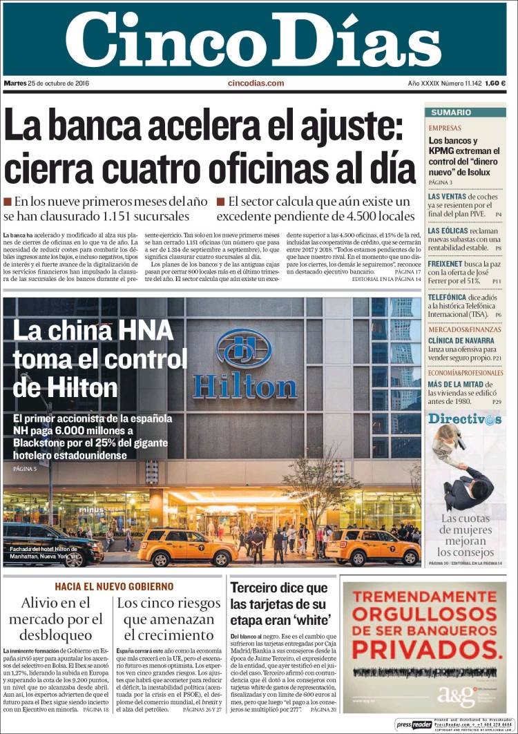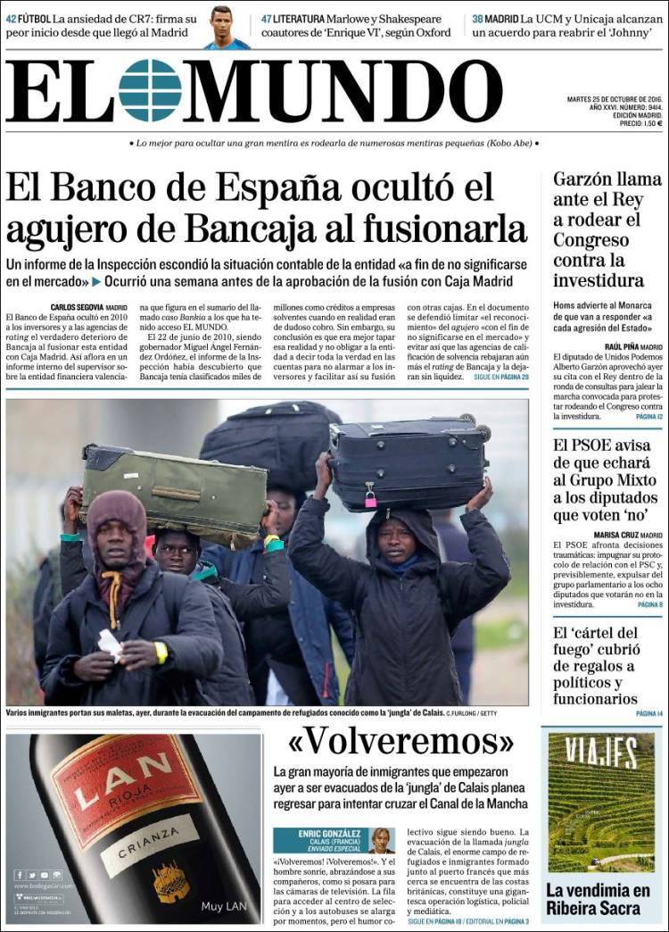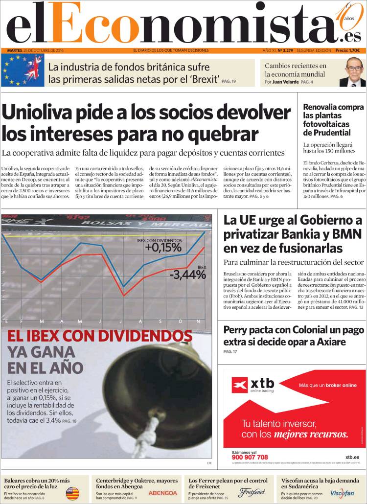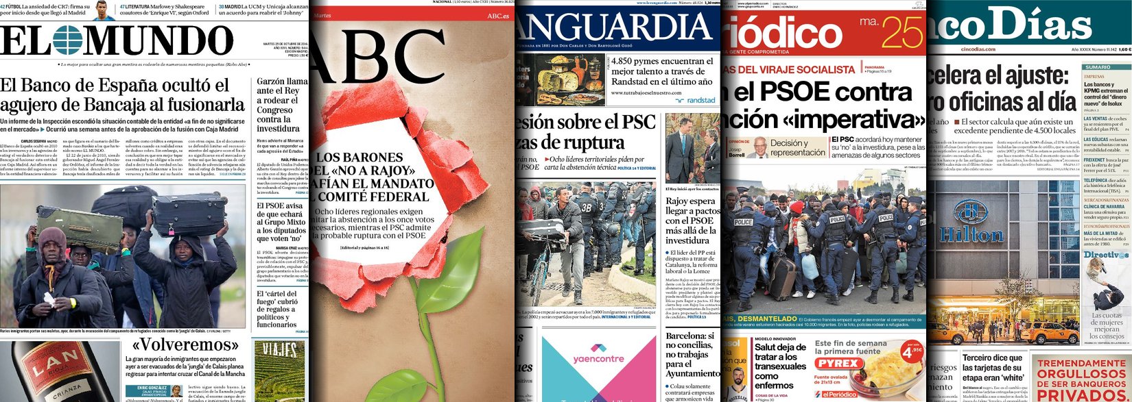 Portadas de los diarios El Mundo, El País, ABC, La Razón, La Vanguardia, Cinco Días, El Economista, Expansión, Marca, As, Mundo Deportivo y Sport.