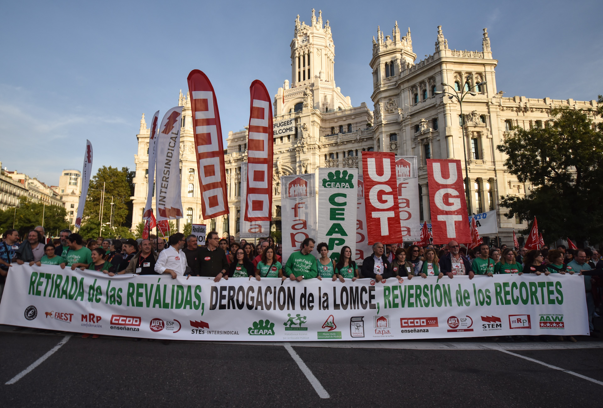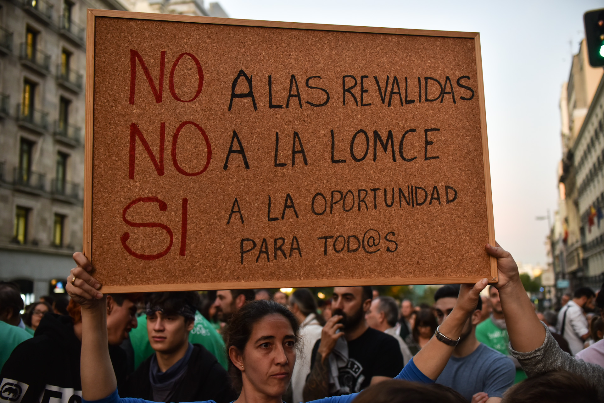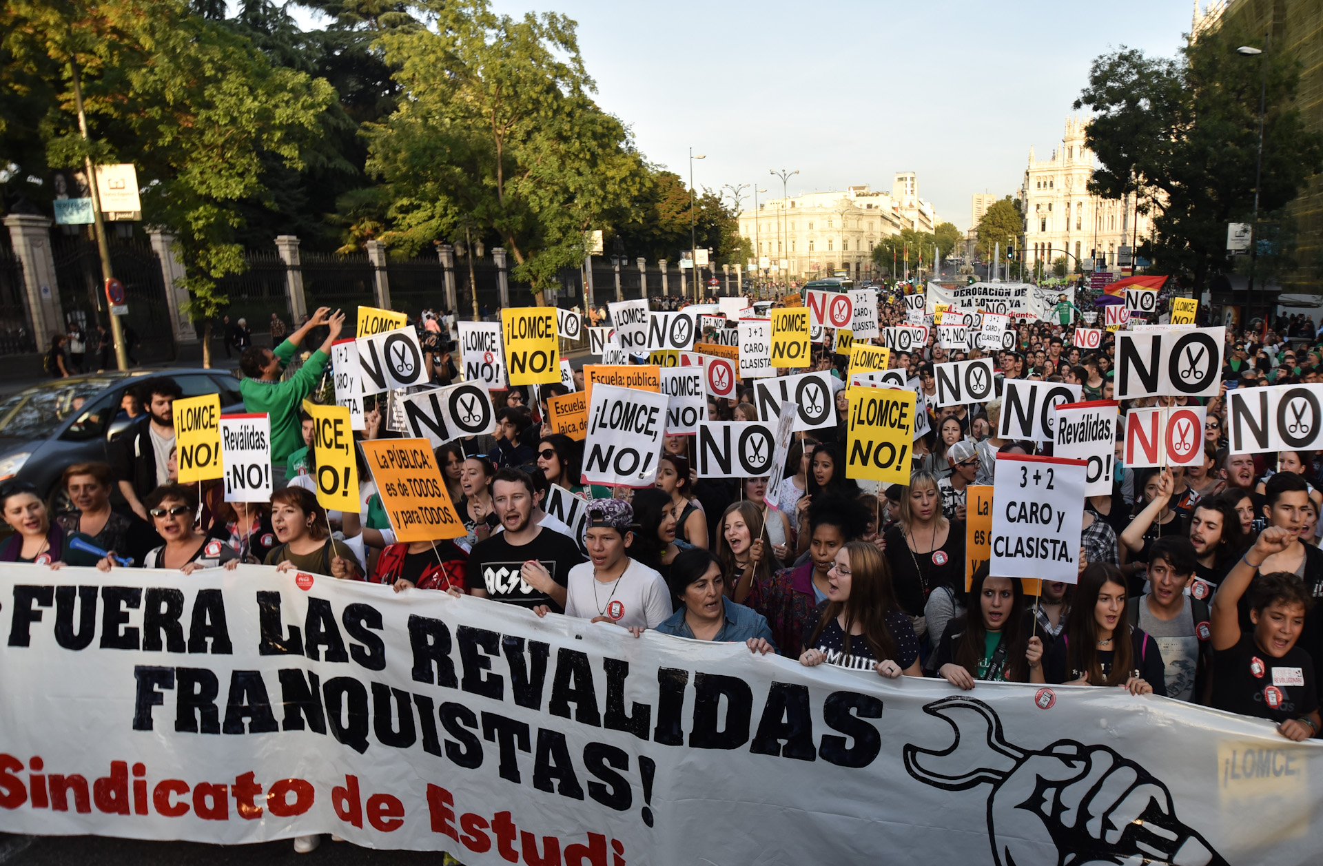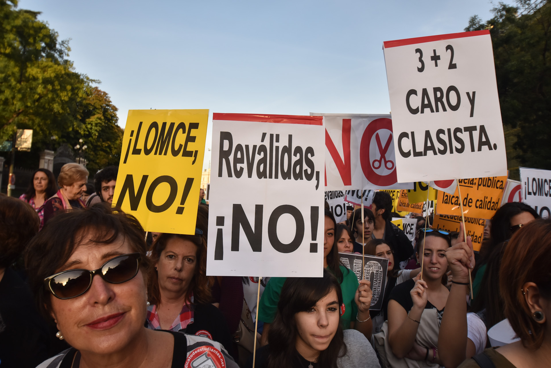 Miles de estudiantes y algunos profesores han protagonizado una manifestación contras las reválidas de la Lomce, y contra la propia ley en general, convocada por la Plataforma Estatal por la Escuela Pública y el Sindicato de Estudiantes. La marcha que arrancó en Neptuno, se desarrolló sin incidentes hasta las cercanías de la Puerta del Sol en Madrid.