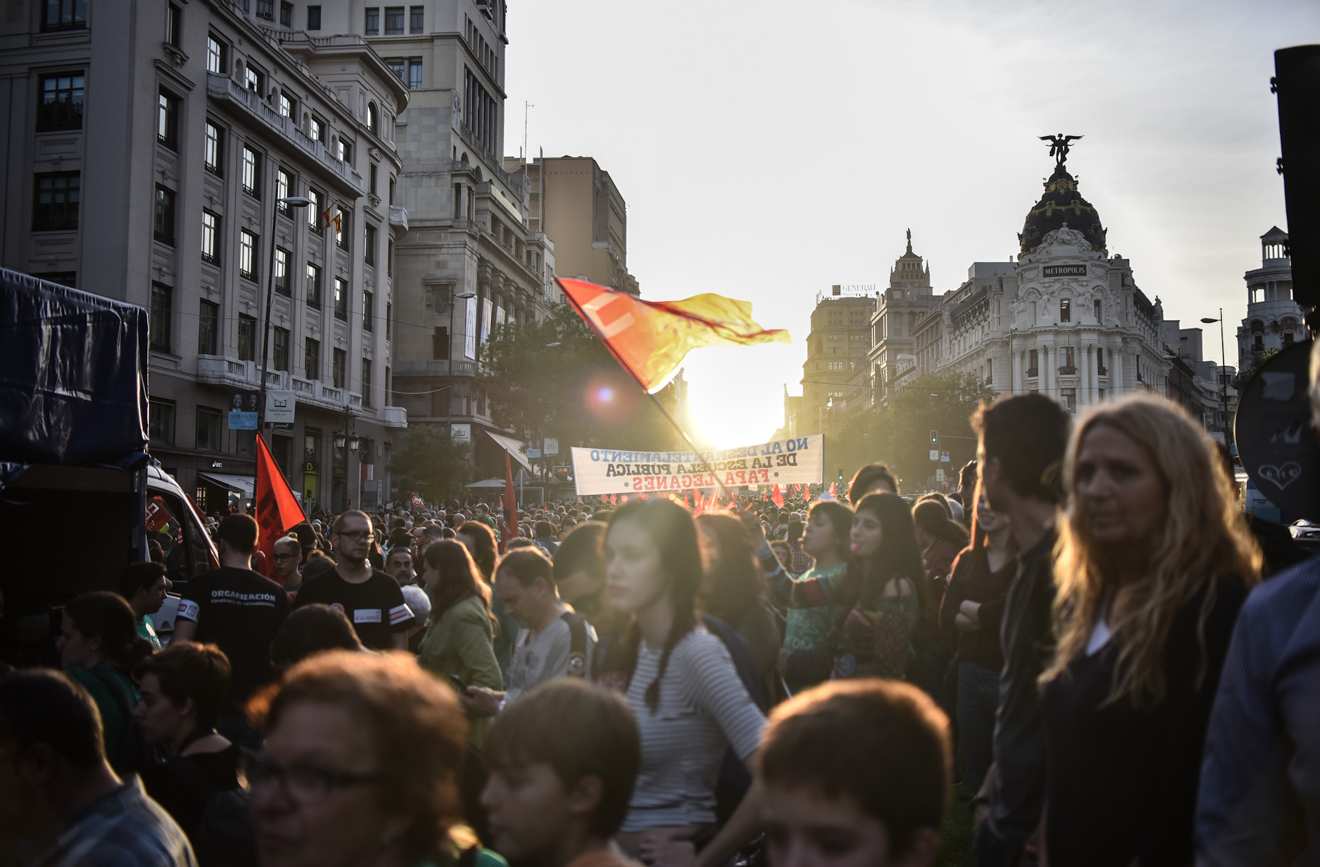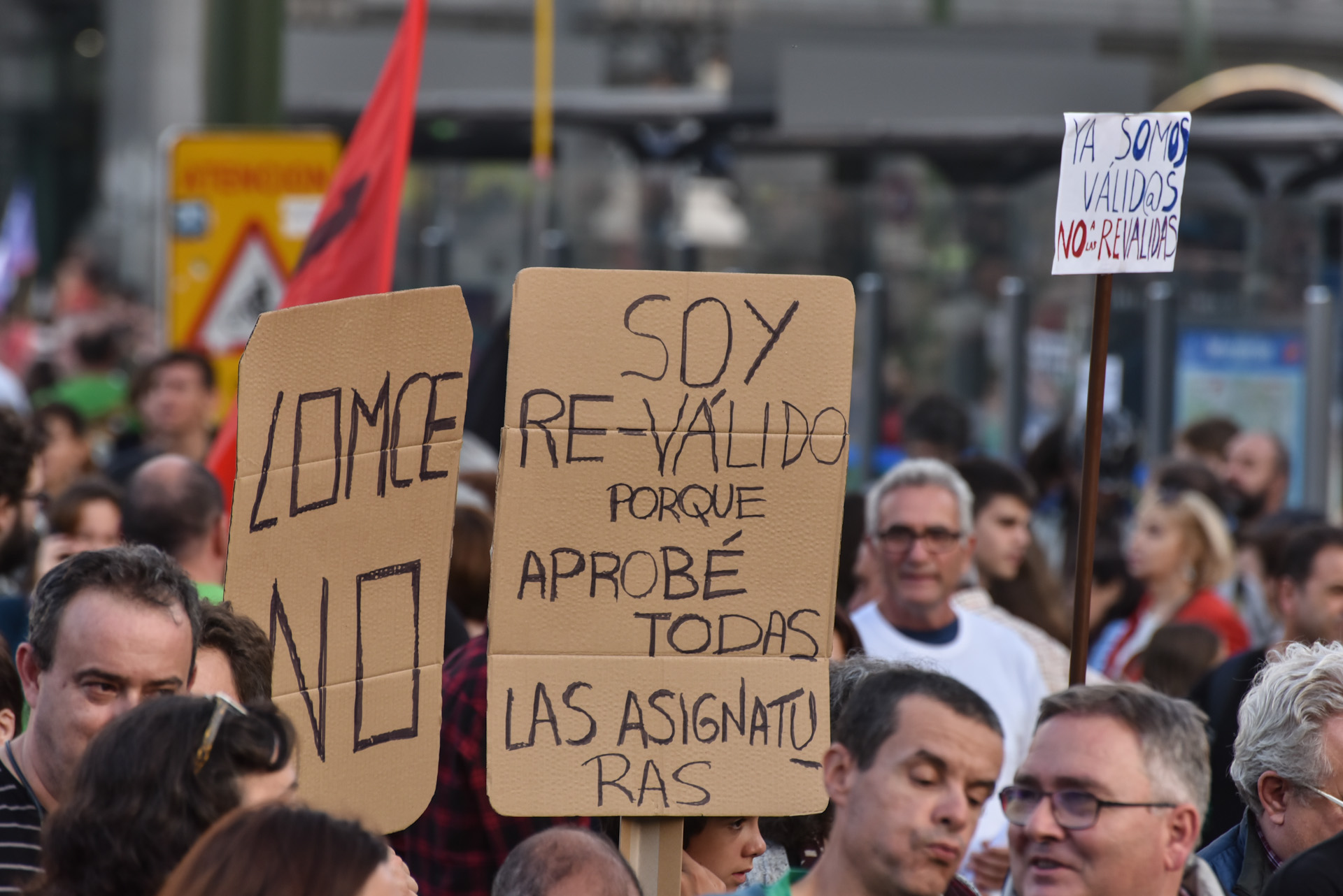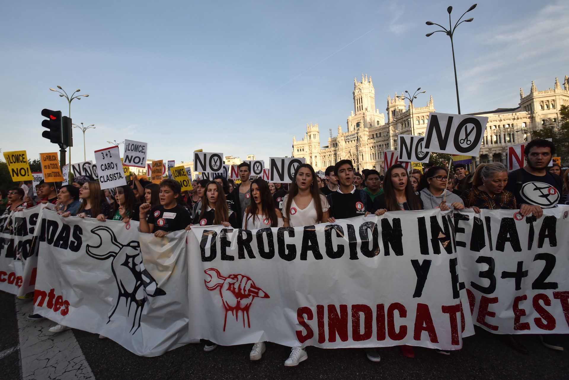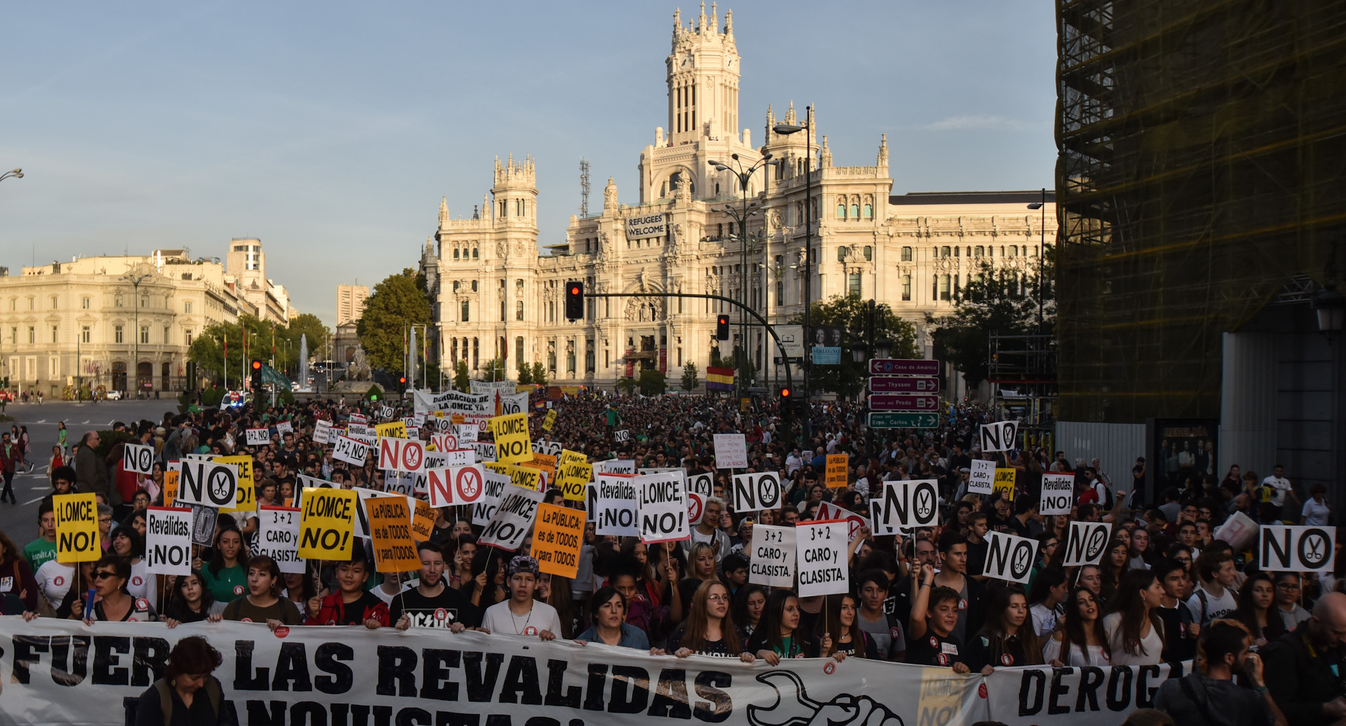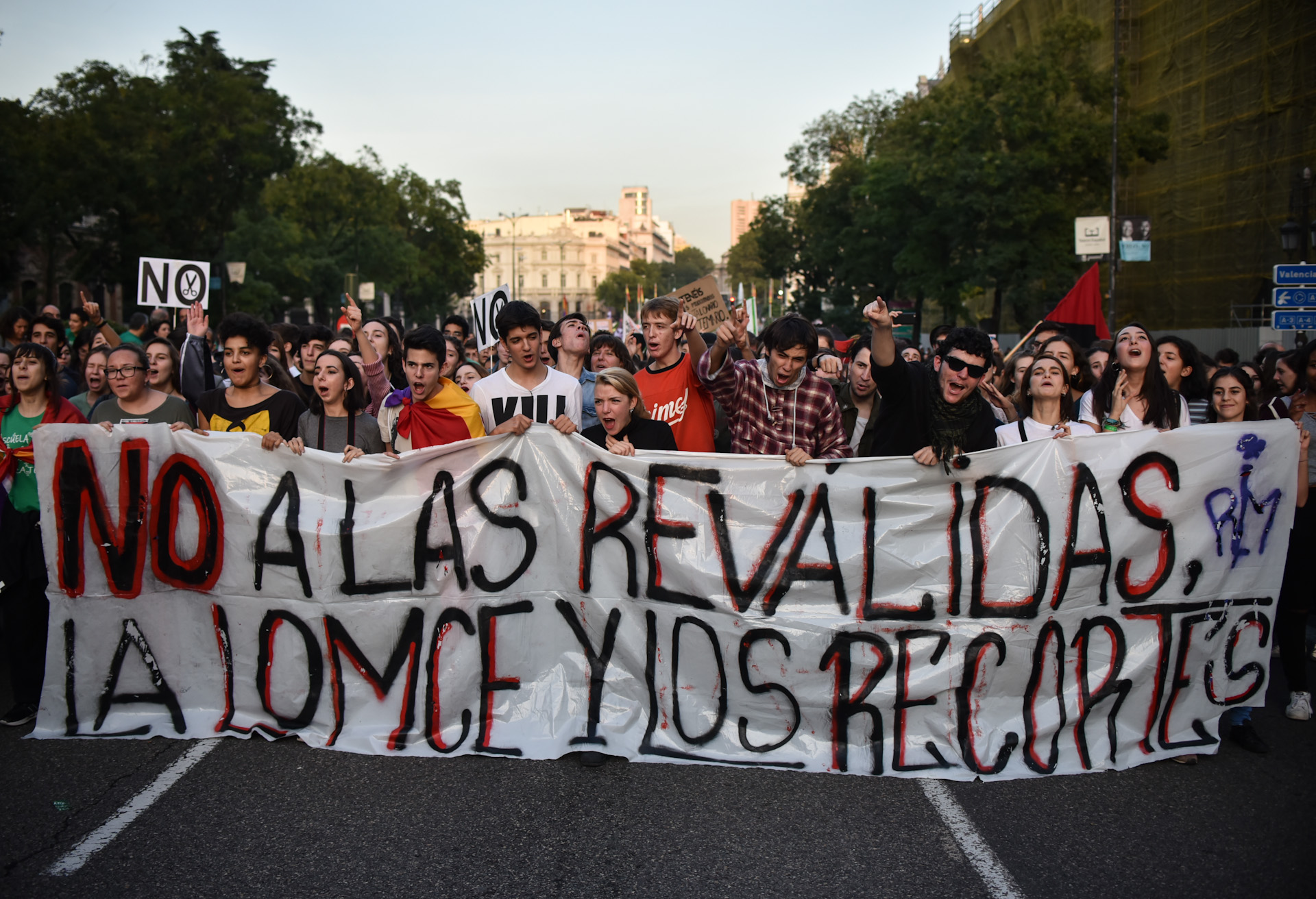 Miles de estudiantes y algunos profesores han protagonizado una manifestación contras las reválidas de la Lomce, y contra la propia ley en general, convocada por la Plataforma Estatal por la Escuela Pública y el Sindicato de Estudiantes. La marcha que arrancó en Neptuno, se desarrolló sin incidentes hasta las cercanías de la Puerta del Sol en Madrid.