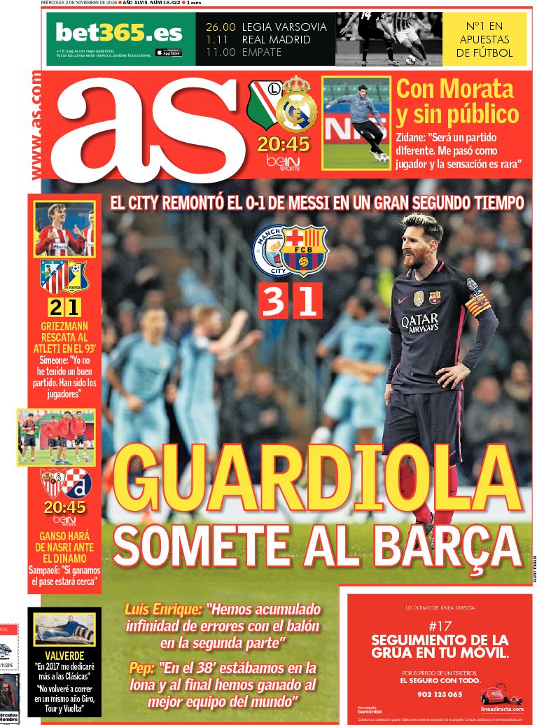 Portadas de los diarios ABC, As, El Periódico y La Vanguardia.