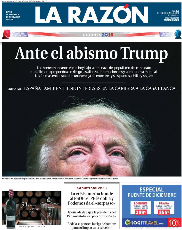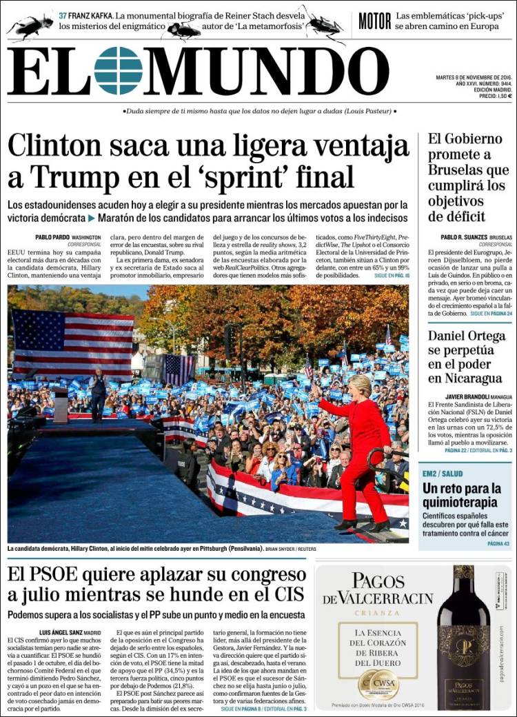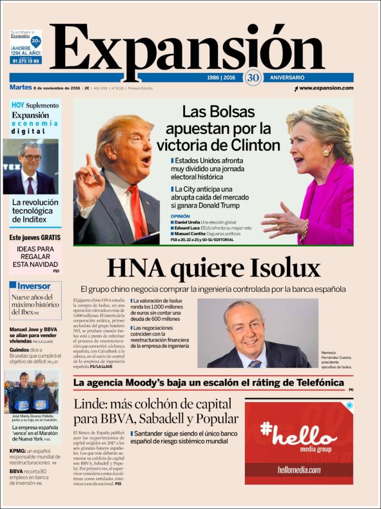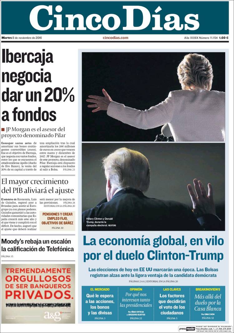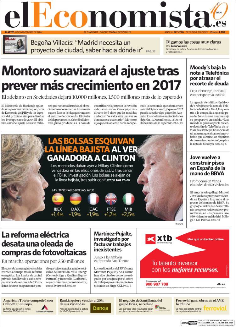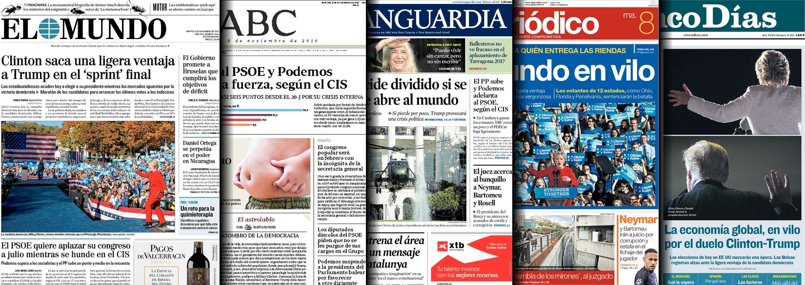 Portadas de los diarios El Mundo, El País, ABC, La Razón, La Vanguardia, Cinco Días, El Economista, Expansión, Marca, As, Mundo Deportivo y Sport.