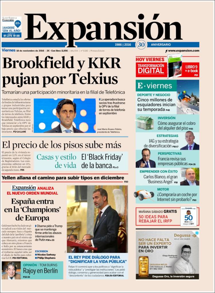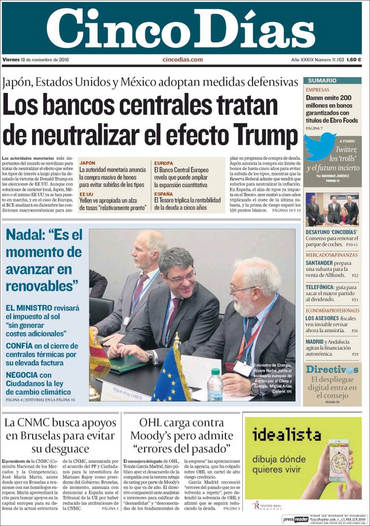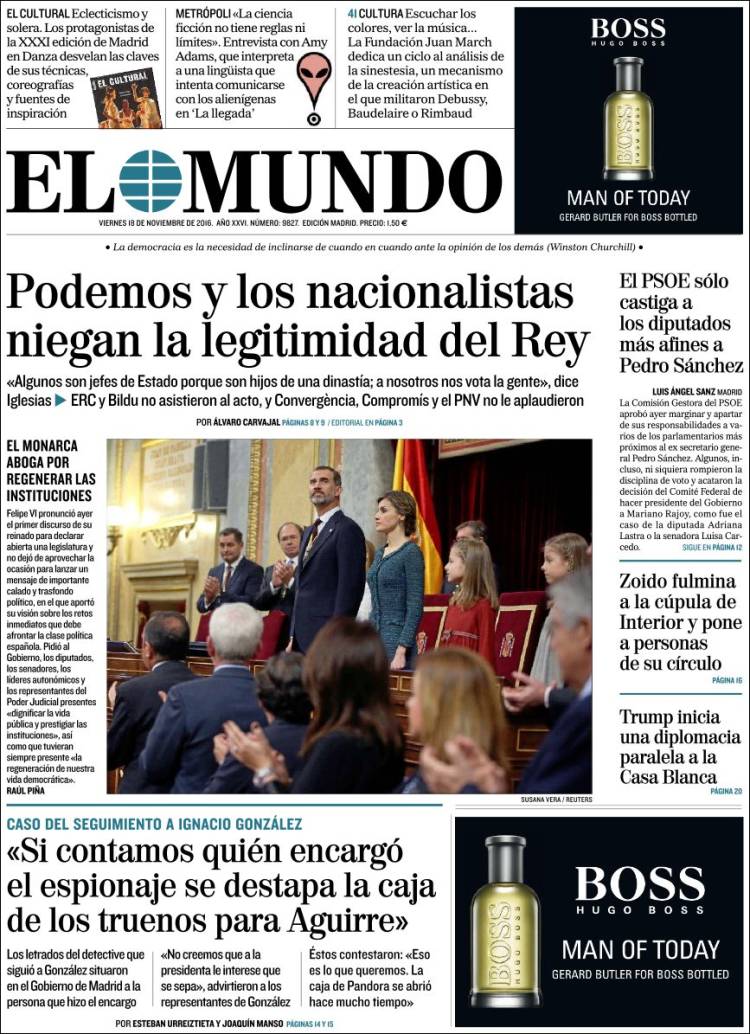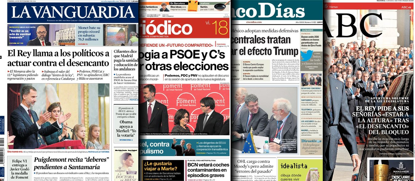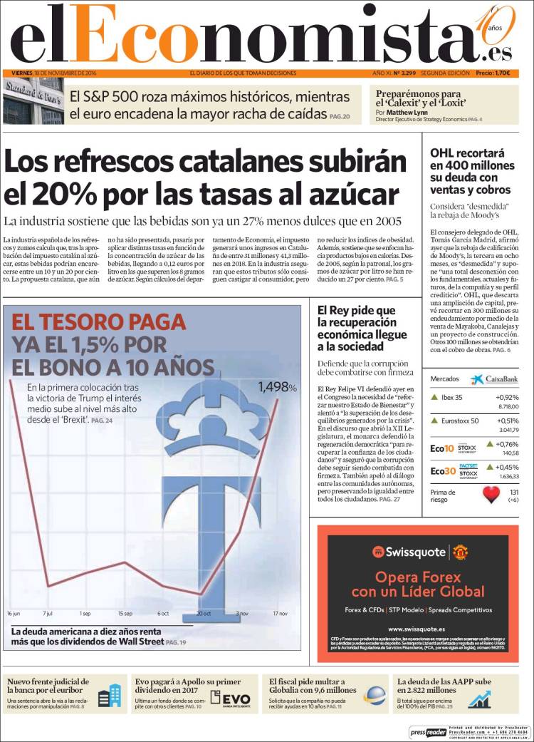 Portadas de los diarios El Mundo, El País, ABC, La Razón, La Vanguardia, Cinco Días, El Economista, Expansión, Marca, As, Mundo Deportivo y Sport.